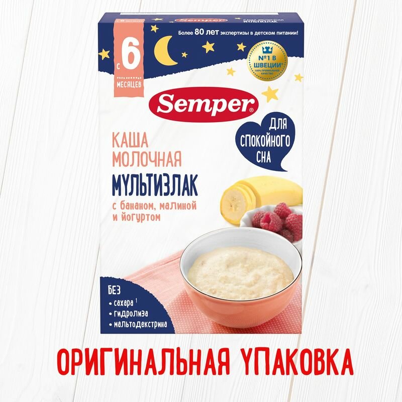 Сервис сравнения цен СкидкаГИД предлагает сравнить цены на товар «Каша молочная Semper Мультизлаковая с бананом малиной и йогуртом с 10 мес. 180 г»