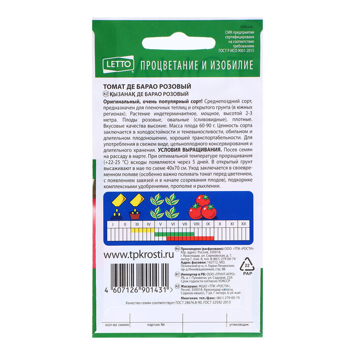 На сегодняшний день товар «Семена Томат Агроуспех Де Барао розовый поздний 01 г» можно купить с кешбеком в 1 магазине: Яндекс.Маркет