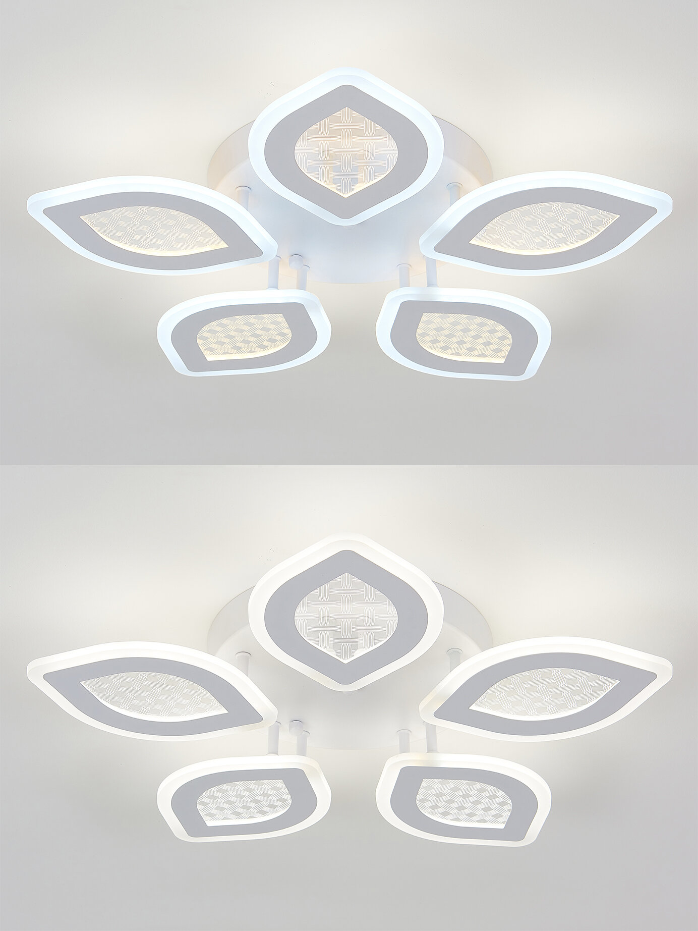 Светодиодный светильник с дистанционным управлением через пульт ДУ, смартфон, планшет с функцией памяти. Лицевую часть составляют равноудалённые друг от друга рожки геометрической формы. По их периметру расположена подсветка, акрил обеспечивает отличное рассеивание света. Дизайн люстры выполнен в современном стиле в белом цвете и отлично подойдёт в любой интерьер. Люстра имеет тёплый, естественный и холодный свет с регулировкой температуры свечения от 3000 до 6500 K. Обладает плавной настройкой яркости в диапазоне от 10% до 100%. Имеется режим ночника и таймер отключения. От стандартного выключателя люстра имеет 4 режима свечения. Данные функции делают светильник оптимальным в процессе использования. Общая мощность 100W позволяет осветить до 16 кв.м. Он прост в сборке, установке и экономичен в обслуживании. Люстра подойдёт для всех видов потолков. Степень защиты 20 IP.