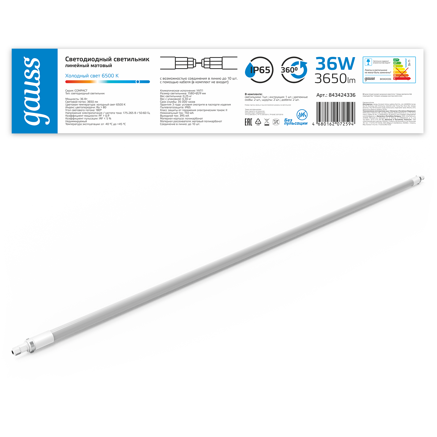 Профессиональный светодиодный влагозащищенный светильник ''Gauss Compact'' предназначен для общего освещения наземных подземных проходов, проездов, подъездов, лестничных клеток, входных групп, балконов, технических и подсобных помещений, в том числе с повышенными требования к пылевлагозащите до IP65.