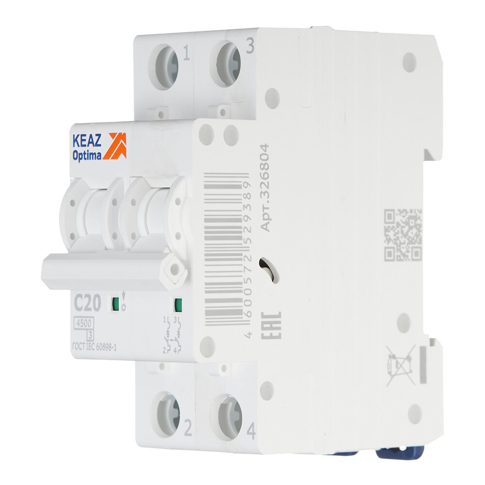 Автоматический выключатель КЭАЗ Opti Din BM63 2P C20 А 4.5 кА (OptiDin BM63-2C20-4,5-УХЛ3)