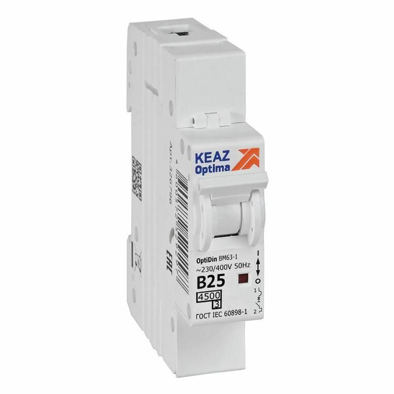 Автоматический выключатель КЭАЗ Opti Din BM63 1P C25 А 4.5 кА 329503 (OptiDin BM63-1B25-4,5-УХЛ3)