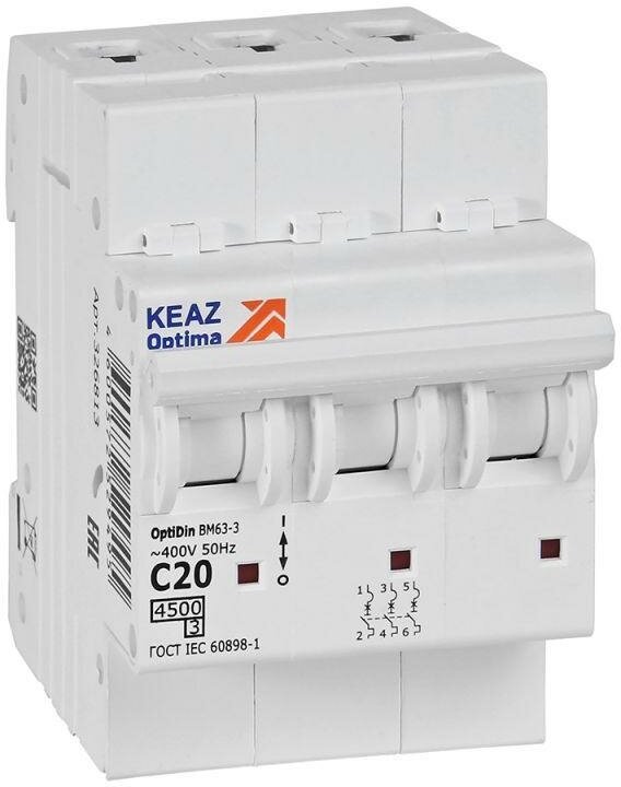 Автоматический выключатель КЭАЗ Opti Din BM63 3P C20 А 4.5 кА (OptiDin BM63-3C20-4,5-УХЛ3)