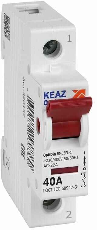 Автоматический выключатель КЭАЗ Opti Din ВМ63PL 1P C40 А 4.5 кА (OptiDin BM63PL-140-УХЛ3)