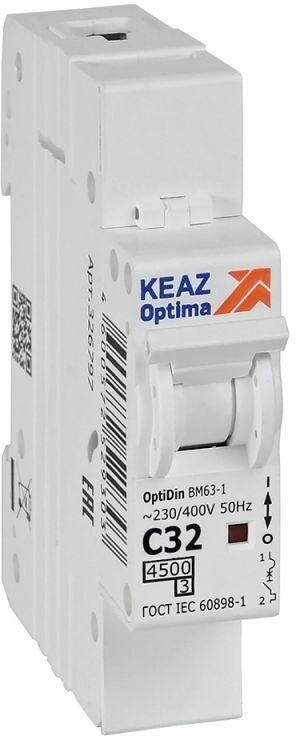 Автоматический выключатель КЭАЗ Opti Din BM63 1P C32 А 4.5 кА (OptiDin BM63-1C32-4,5-УХЛ3)