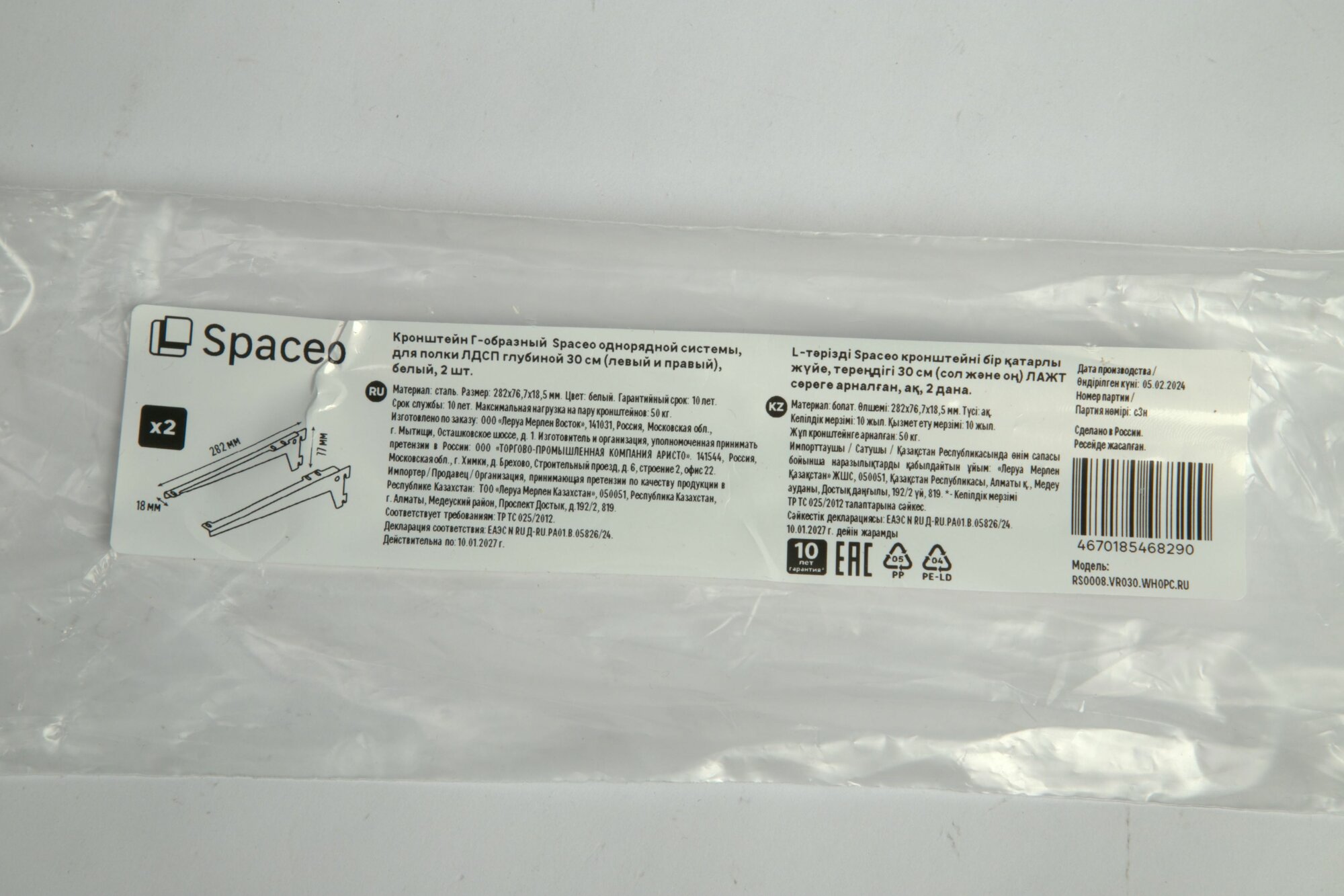 **Кронштейн для полок Spaceo 30 см нагрузка до 50 кг цвет белый 2 шт** – часть системы для хранения Spaceo.
