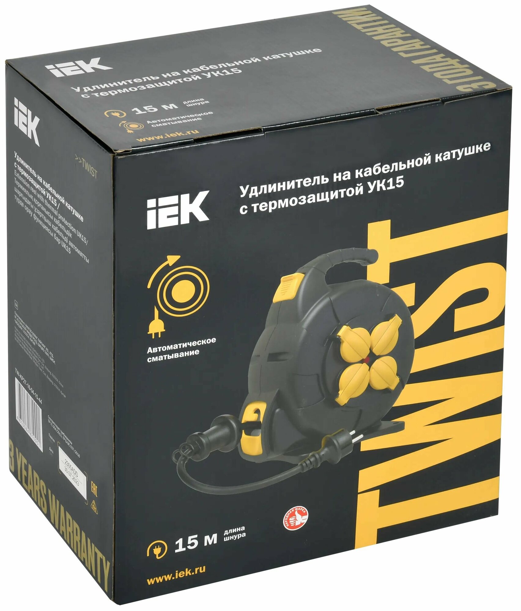 Удлинитель на катушке IEK TW-KP27-16-04-20 4 розетки без заземления 3500 Вт 15 м цвет черный