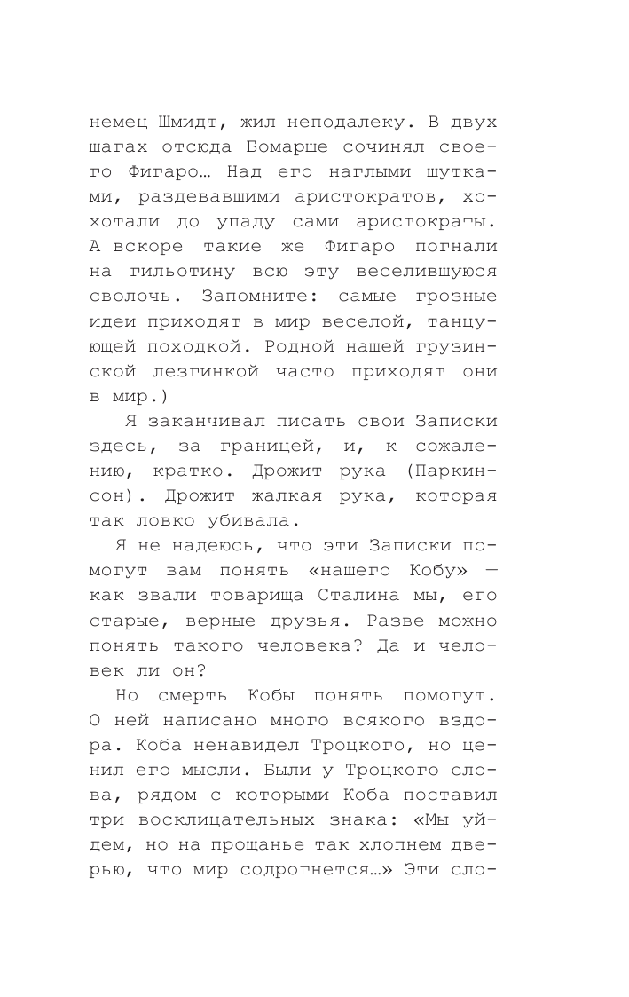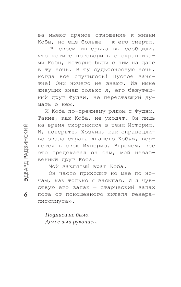В основе книги некая рукопись, полученная автором при загадочных обстоятельствах. Этот текст заново открывает нам затонувшую Атлантиду, страну по имени СССР, и ее самую таинственную и страшную фигуру - Кобу, Иосифа Сталина. "И Коба по-прежнему рядом... Такие как Коба не уходят. Он лишь на время схоронился в тени Истории. И поверьте, Хозяин, как справедливо звала страна "нашего Кобу" вернется в свою Империю. Впрочем, все это предсказал он сам, мой незабвенный друг Коба. Мой заклятый враг Коба".