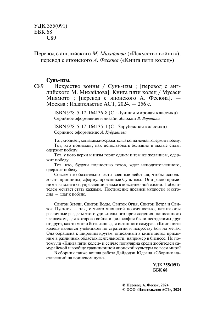 Искусство войны. Книга пяти колец (Сунь-Цзы, Миямото Мусаси); АСТ, Neoclassic, 2024