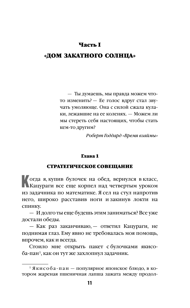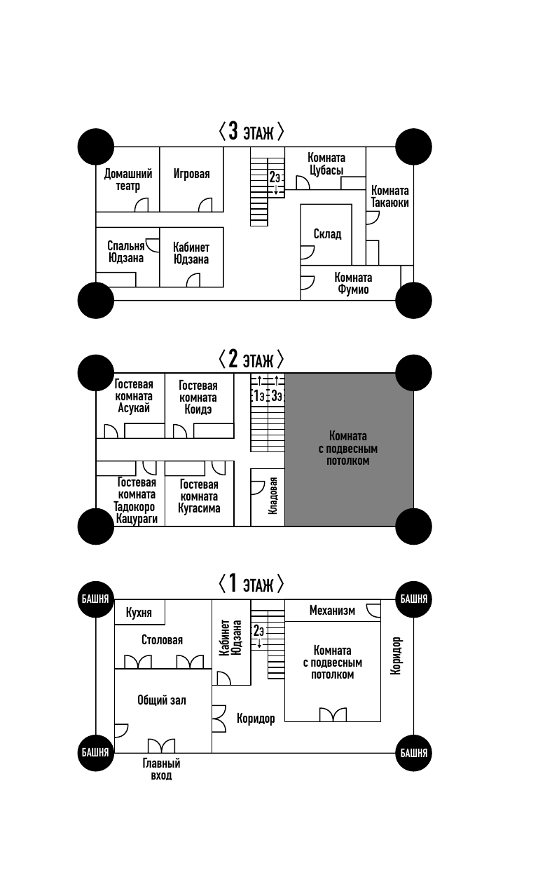 "Дом закатного солнца" знаменитого автора детективов Юдзана Такарады – крайне загадочный особняк со множеством потайных помещений. Это место буквально нашпиговано странными механизмами. Когда-то они служили для интеллектуальных игр писателя, но теперь тот прикован к постели и едва соображает. Лесной пожар запер в доме Такарады весьма разношерстную компанию. Люди оказались отрезаными от мира кольцом огня. Чтобы спастись, они должны найти тайный проход, скрытый где-то в здании. Однако поиски прерваны шокирующим событием – внучка литератора… раздавлена замысловатым подвесным потолком одной из комнат. В компании есть два человека с выдающимися дедуктивными способностями. Асукай Хикару, бывший детектив, считает, что это несчастный случай – девушку убил сам дом. Тэруёси Кацураги – детектив начинающий, однако он уверен: убийца – один из них. Перед лицом неминуемой гибели в огне эти двое начинают битву умов…