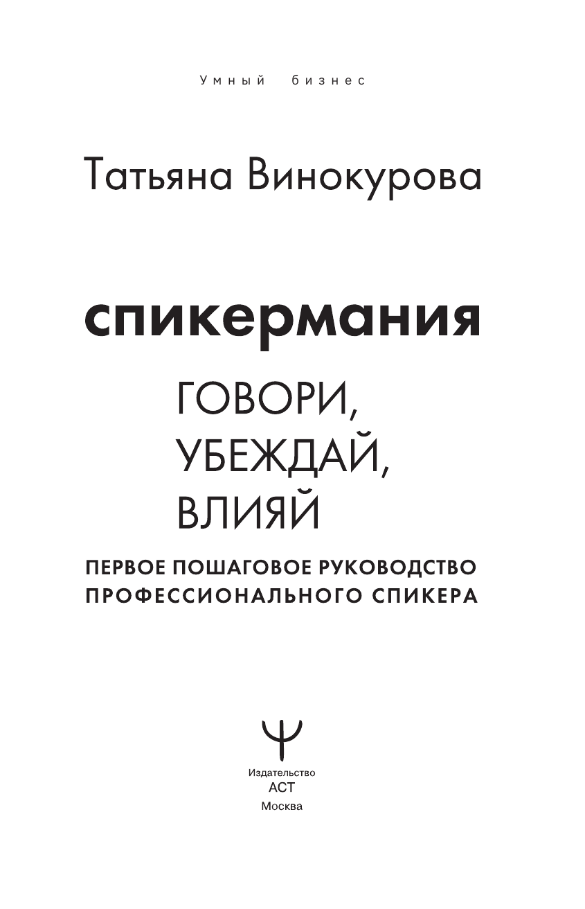 Спикермания. Говори убеждай влияй. Первое пошаговое руководство профессионального спикера (Татьяна Винокурова); Издательство АСТ, 2023