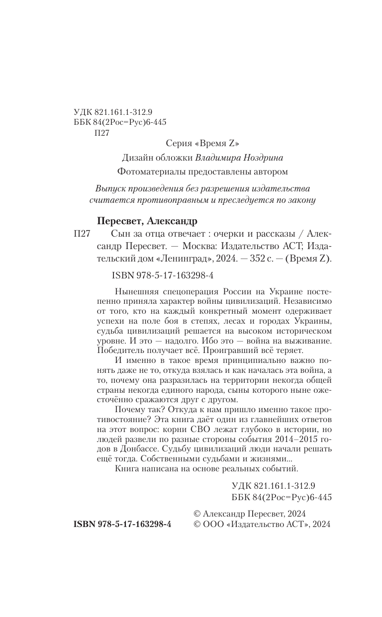 Книга: Сын за отца отвечает (Александр Пересвет); Издательство АСТ, 2024
