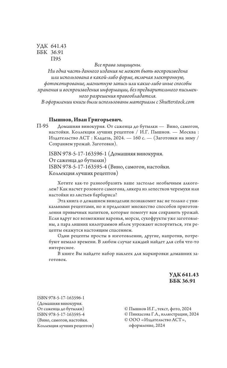Домашняя винокурня. От саженца до бутылки (Иван Григорьевич Пышнов); АСТ, 2024