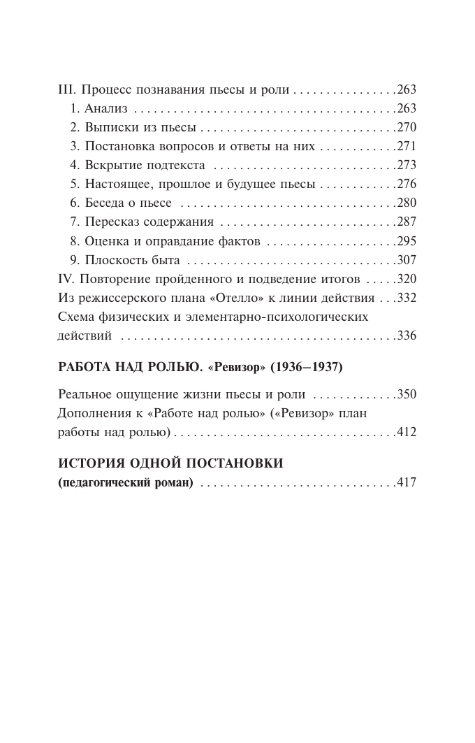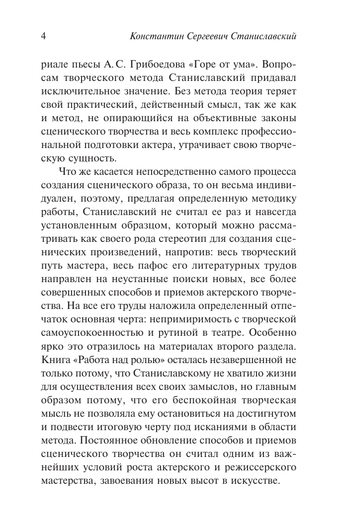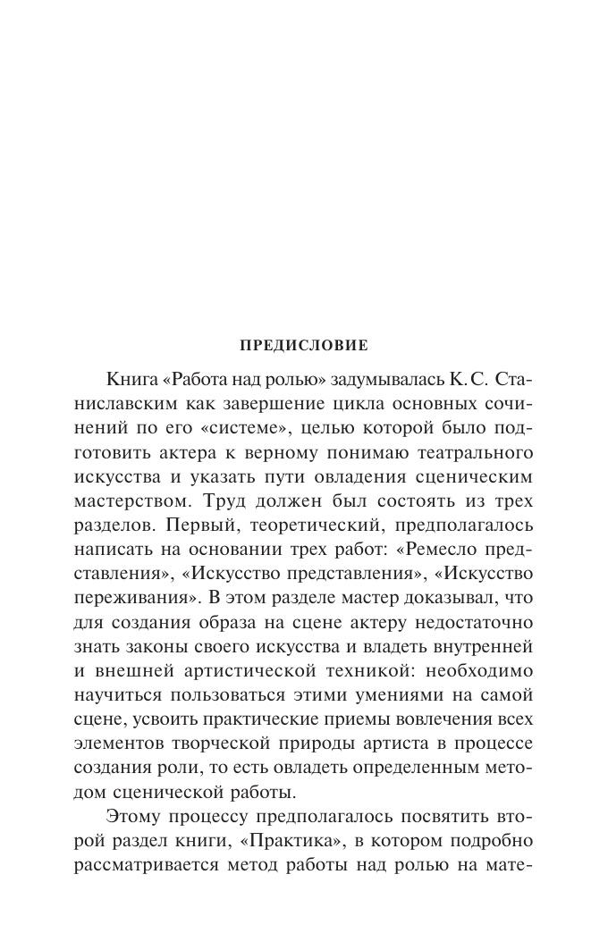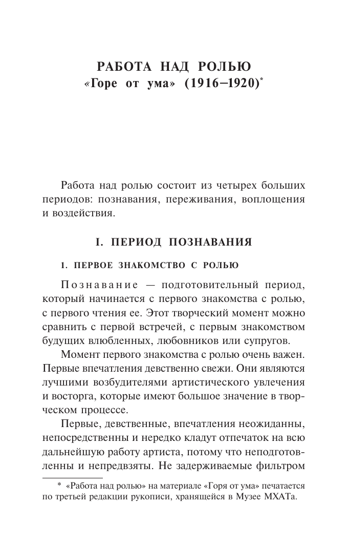 В данном издании публикуются подготовительные материалы к неосуществленной книге Станиславского «Работа над ролью», которая должна была завершить цикл основных сочинений по «системе» и указать пути овладения сценическим мастерством. На примере «Горя от ума», «Отелло» и «Ревизора» автор анализирует такие этапы подготовки, как знакомство с ролью, создание и оживление внешних и внутренних обстоятельств и период переживания происходящего с героем.