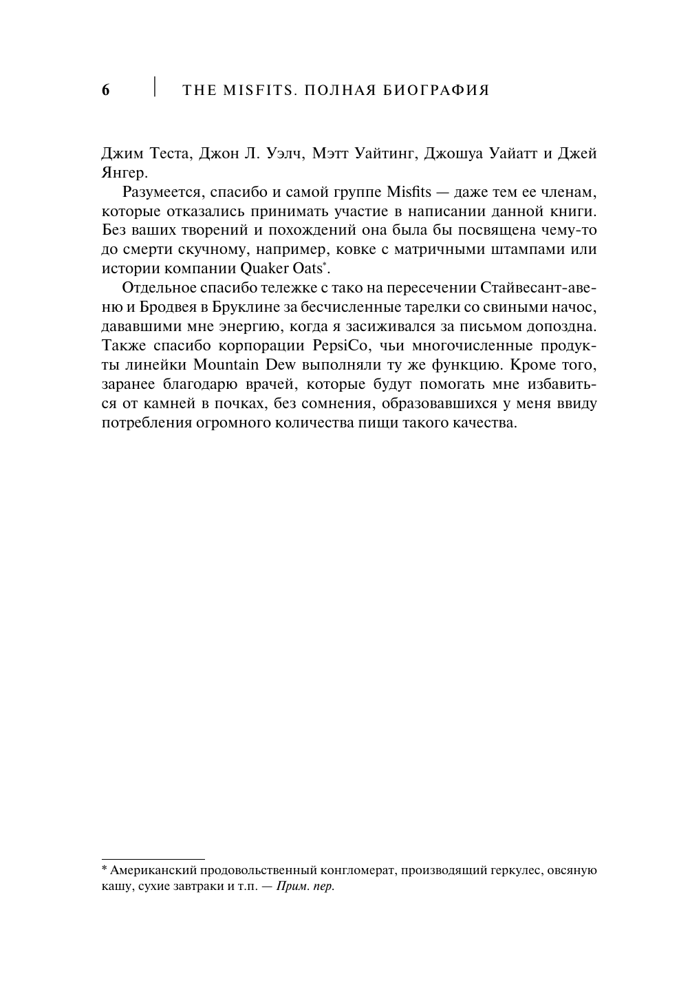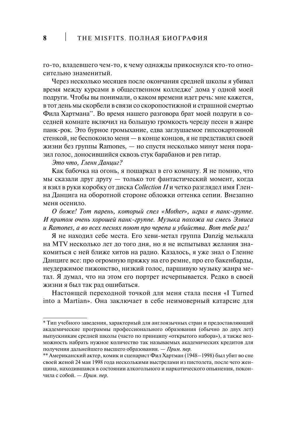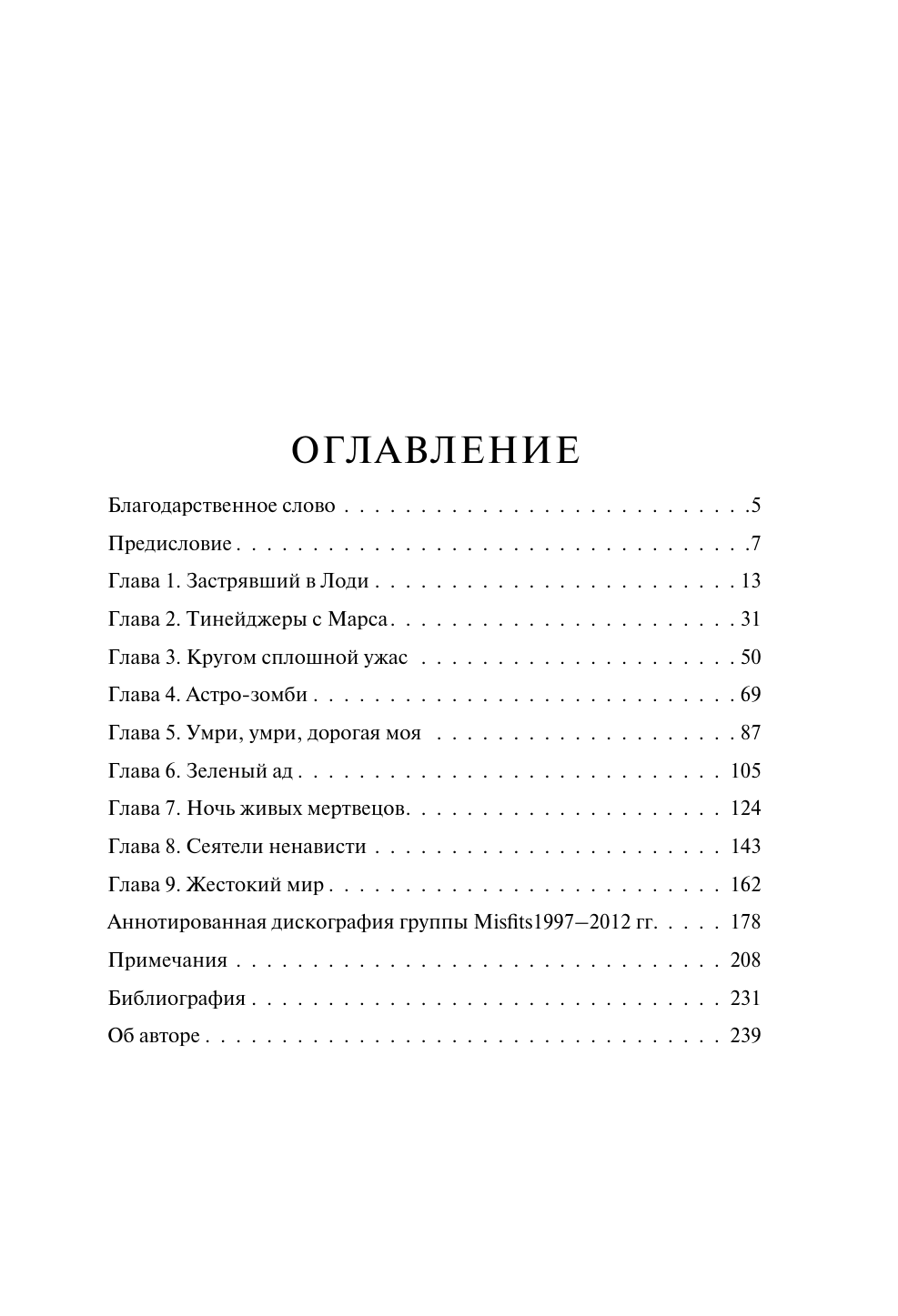 The Misfits не похожи на группы, о которых обычно пишут книги. Они не производили громких революций в мире рок-музыки, не обзаводились толпами подражателей и не поражали общественность немыслимыми скандальными выходками. Однако, они сумели создать нечто новое и самобытное — их мрачные песни и готические сюжеты стали нестареющей классикой хоррор-панка, чье влияние сильно и сегодня. В биографии Джеймса Грина-младшего разворачивается полная история группы — от появления узнаваемого логотипа-черепа и фирменной «дьявольской пряди» до постоянных смен состава, распада и воссоединения коллектива. Проследите непростой, полный взлетов и падений, путь самой будоражащей кровь хоррор-группы и помните… Музыка The Misfits — это музыка, которая оставляет следы.
