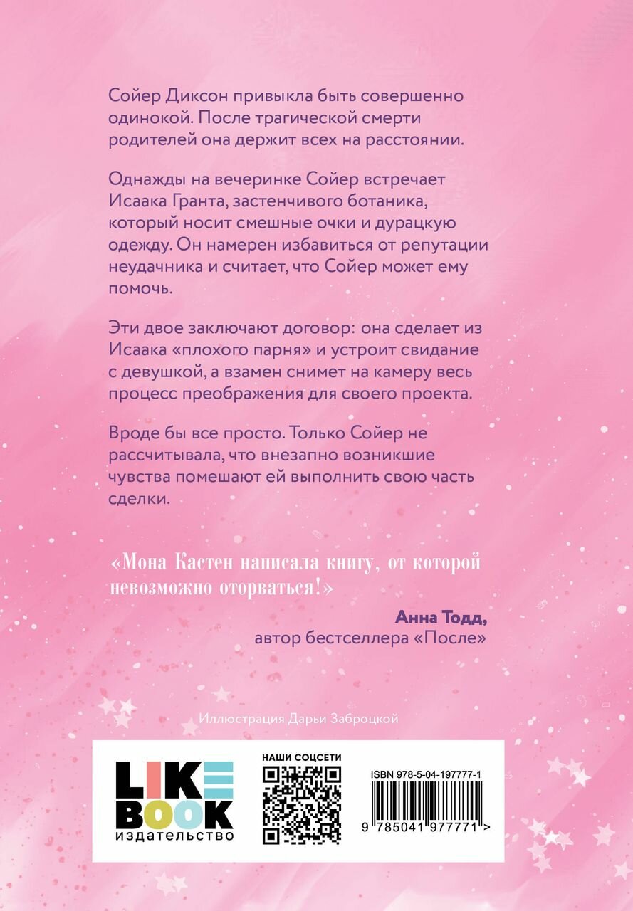 Сойер Диксон привыкла быть совершенно одинокой. После трагической смерти родителей она держит всех на расстоянии. Однажды на вечеринке Сойер встречает Исаака Гранта, застенчивого ботаника, который носит смешные очки и дурацкую одежду. Он намерен избавиться от репутации неудачника и считает, что Сойер может ему помочь. Эти двое заключают договор: она сделает из Исаака "плохого парня" и устроит свидание с девушкой, а взамен снимет на камеру весь процесс преображения для своего проекта. Вроде бы все просто. Только Сойер не рассчитывала, что внезапно возникшие чувства помешают ей выполнить свою часть сделки.