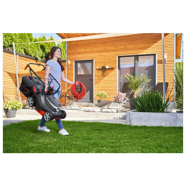 Благодаря бесшумной работе и отсутствию вредных выбросов электрическая газонокосилка станет Вашим идеальным помощником в уходе за газоном в любой местности. Газонокосилка оснащена двигателем в 1200 Вт. Она прекрасно передвигается по траве, не нагревается, не шумит, работает без выхлопных газов и без моторного масла. Не нужно делать перерывы на подзарядку аккумулятора или заправку топливного бака, а значит и нет дополнительного веса аккумулятора или полного бензобака, ведь газонокосилка питается от электричества. Превосходный результат: гладкий, зеленый газон, работаем газонокосилкой с небольшим весом и большим комфортом вождения.Модель 3.22 E Easy с шириной среза 32 см особенно впечатляет своей компактной конструкцией без выступающих колес - идеально подходит для точного скашивания близко к краю, в углах и труднодоступных местах на небольших участках. Прочная ручка для переноски, центральная регулировка высоты среза, малый вес (12 кг) и многие другие элементы комфорта включены в данную модель газонокосилок. Данная модель идеально подойдет для хрупких обладательниц садов, а также для садоводов, ценящих легкость в обращении.