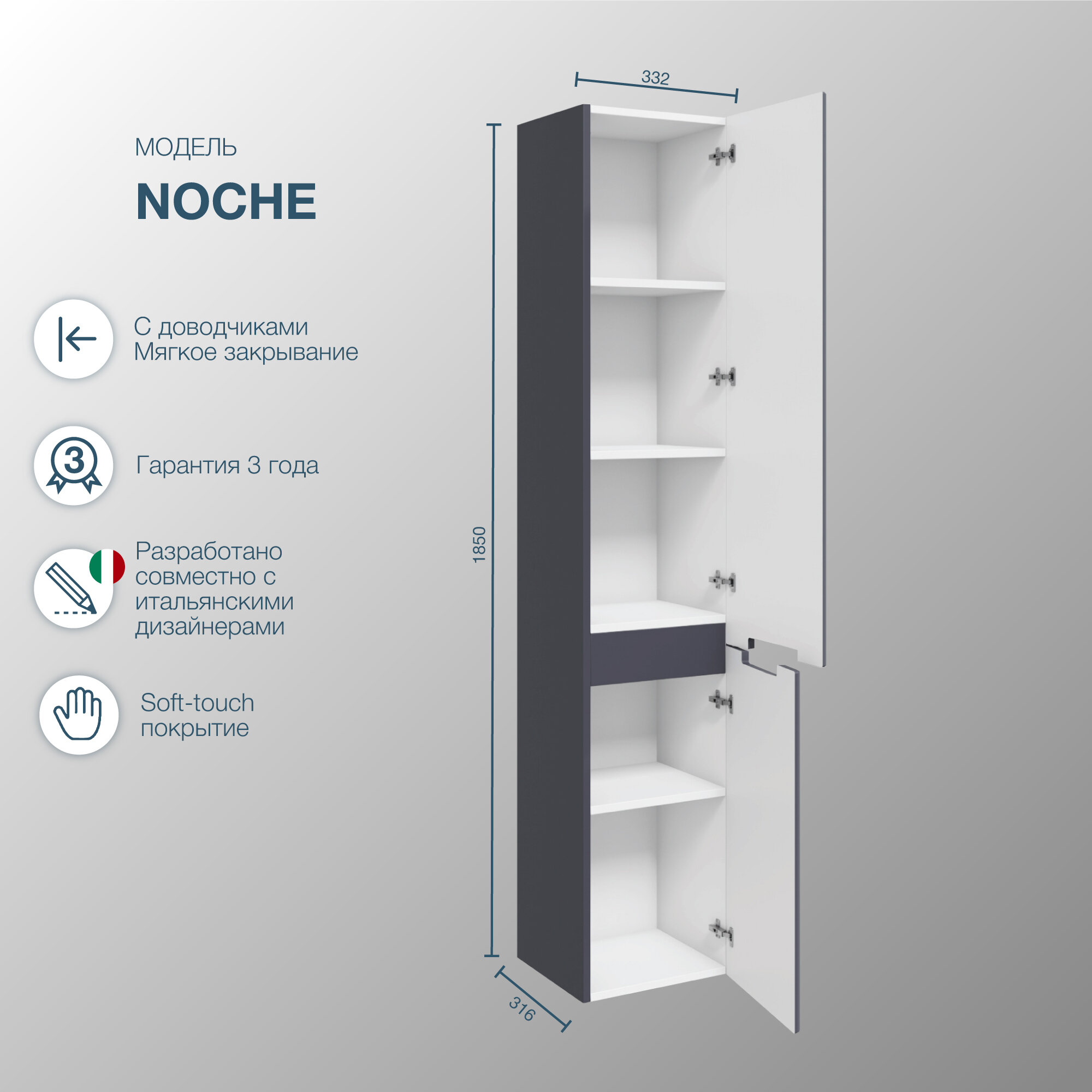 Шкаф-пенал Sanstar Noche подвесной идеальное решение для создания комфортной атмосферы в любой ванной комнате. Подвесной способ установки дает возможность не только визуально увеличить пространство, но и обеспечивает быстрый и удобный доступ для уборки.