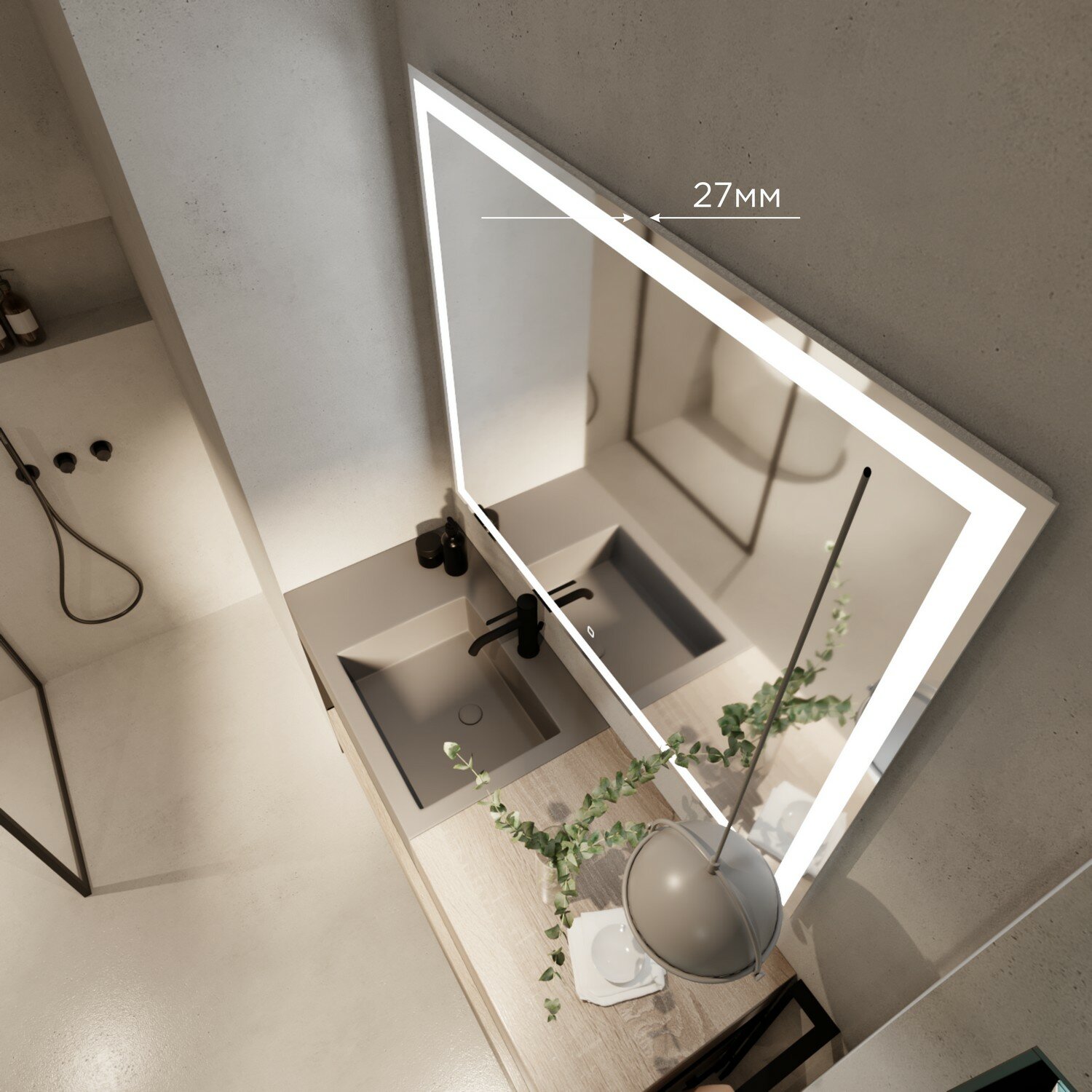 Настенное зеркало для ванной Mixline с подсветкой 100 х 80 см изготовлено из зеркального полотна толщиной 4 мм. Оснащено сенсорным выключателем и диммером, который при удержании пальца на сенсоре позволяет менять интенсивность освещения. Свет белый 6000К.Все электрические компоненты размещены внутри корпуса из Abs-пластика, который защищает от влаги и механических повреждений.В качестве элемента подсветки используется светодиодная лента, которая обеспечивает яркое свечение по периметру зеркала. Срок службы диодов -100 000 часов.Зеркало влагостойкое и защищено от попадания случайных брызг и капель воды.Комплектация: крепеж, инструкция.