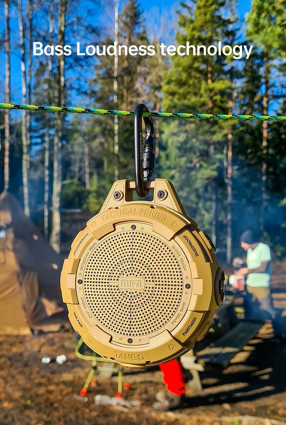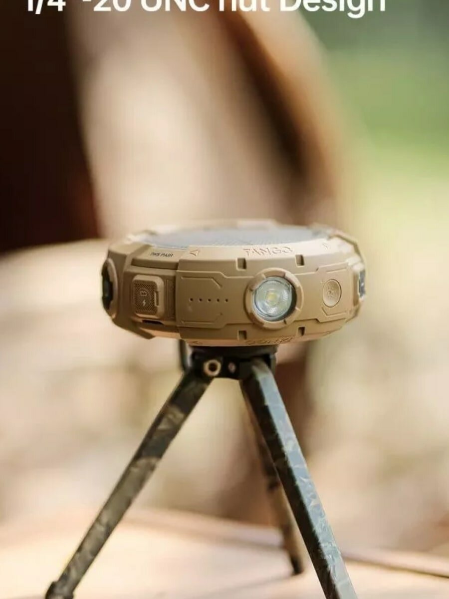Портативная bluetooth-колонка Tango достаточно прочная и надежная для всех действий в вашей жизни. Она крепится к рюкзаку и воспроизводит четкий звук с мощными басами. Двойные пассивные излучатели Благодаря индивидуальному дизайну динамика и двойным пассивным излучателем эта небольшая bluetooth-колонка воспроизводит четкий сбалансированный звук с впечатляюще глубокими басами. Встроенный литиевый аккумулятор 5000 мАч с 25 часами воспроизведения, также поддерживает воспроизведение во время зарядки. Работа при -20 °- + 40 ° градусах температуры окружающей среды Поддерживает соединение TWS между двумя колонками, наслаждайтесь потрясающим объемным стереозвуком. Встроенный литиевый аккумулятор емкостью 5000 мАч также может свободно заряжать ваши устройства как уникальная зарядная станция. Военный дизайн, защищенный корпус Антивандальная, ударопрочная, антикоррозийная обработка Металлический корпус Фонарик 1/4 "-20 UNC гайка для крепления под штатив Малые габариты и вес Влагозащита IP67, широкий диапазон рабочих температур Мощность 25Вт Bluetooth 5.3 Режим TWS, функция Multipoint Аккумулятор 5000 mAh, режим PowerBank до 25ч прослушивания музыки Отличная комплектация