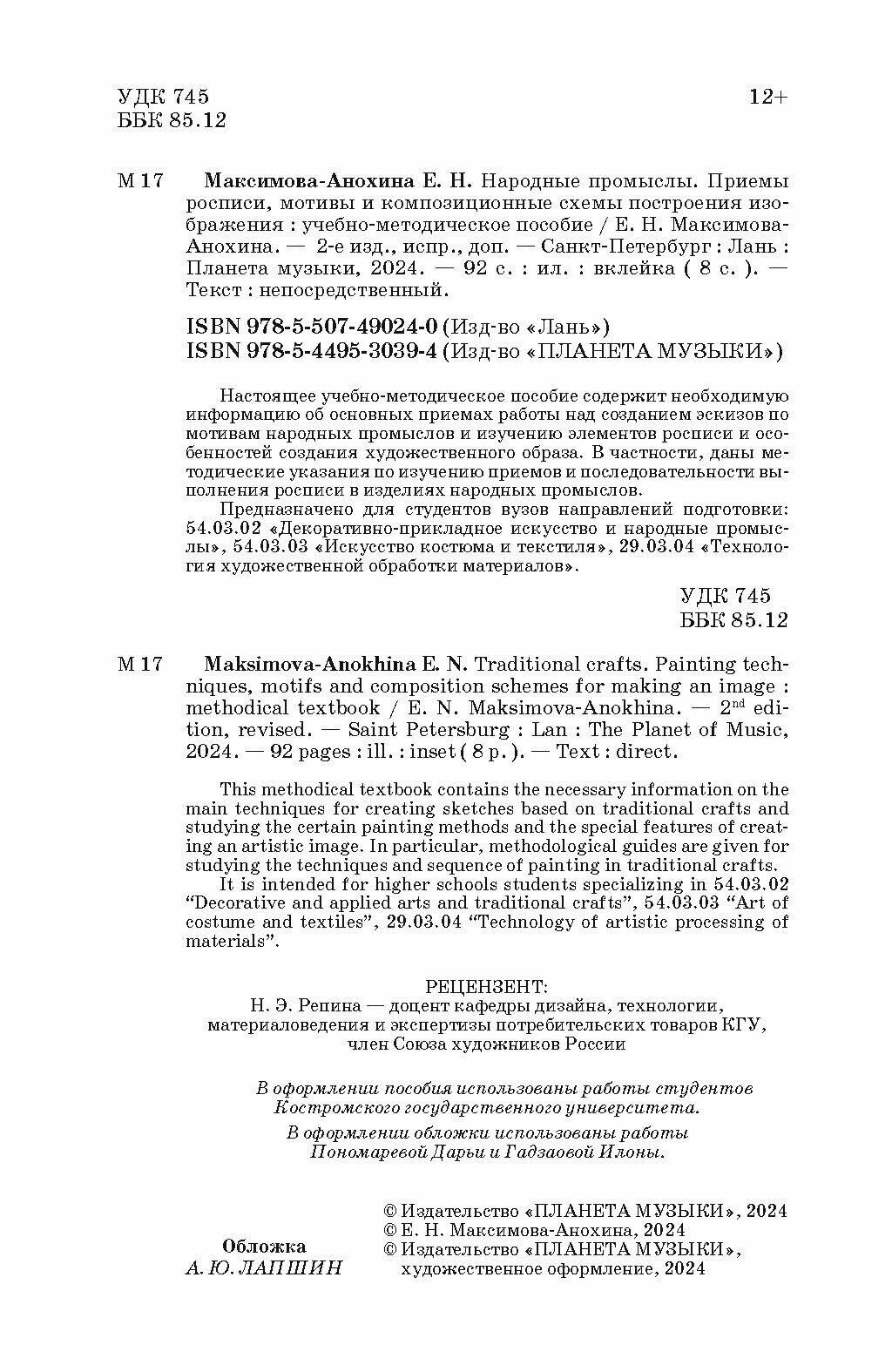 Народные промыслы. Приемы росписи мотивы и композиционные схемы построения изображения (Е. Н. Максимова-Анохина); Издательство «Планета музыки», 2024