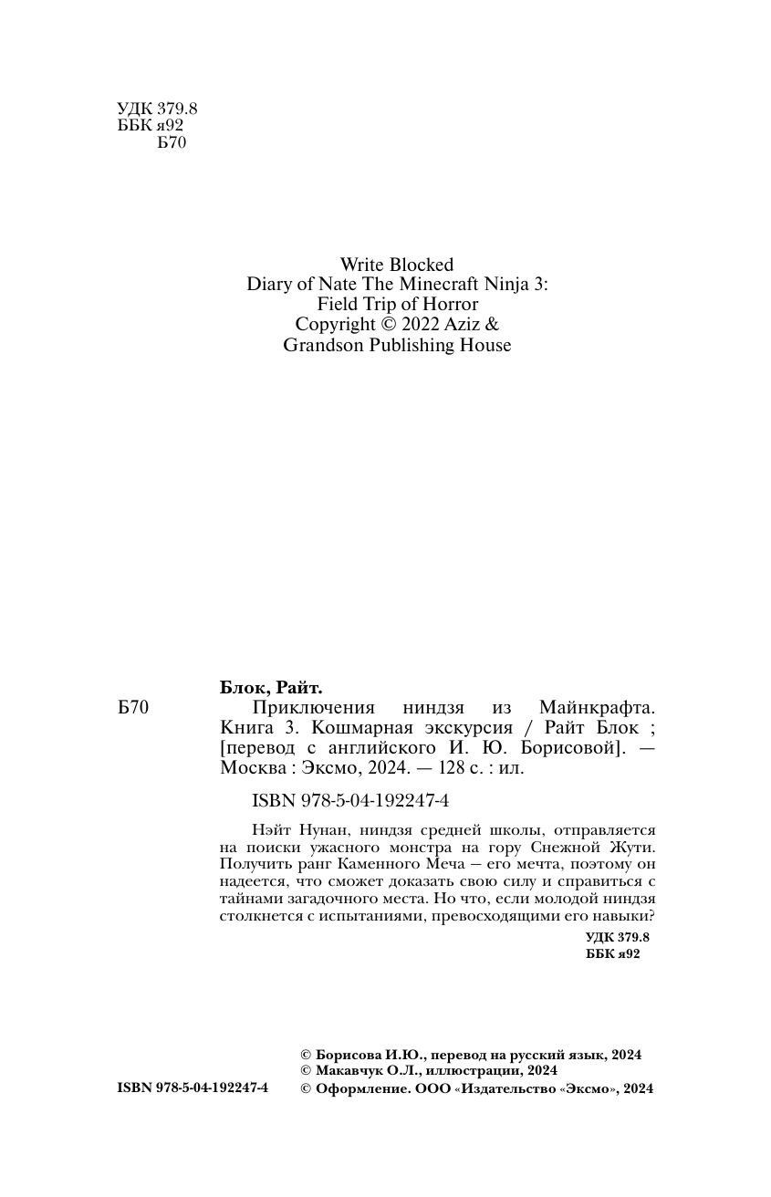 Приключения ниндзя из Майнкрафта. Книга 3. Кошмарная экскурсия (Блок Райт); ООО "Издательство "Эксмо", 2024