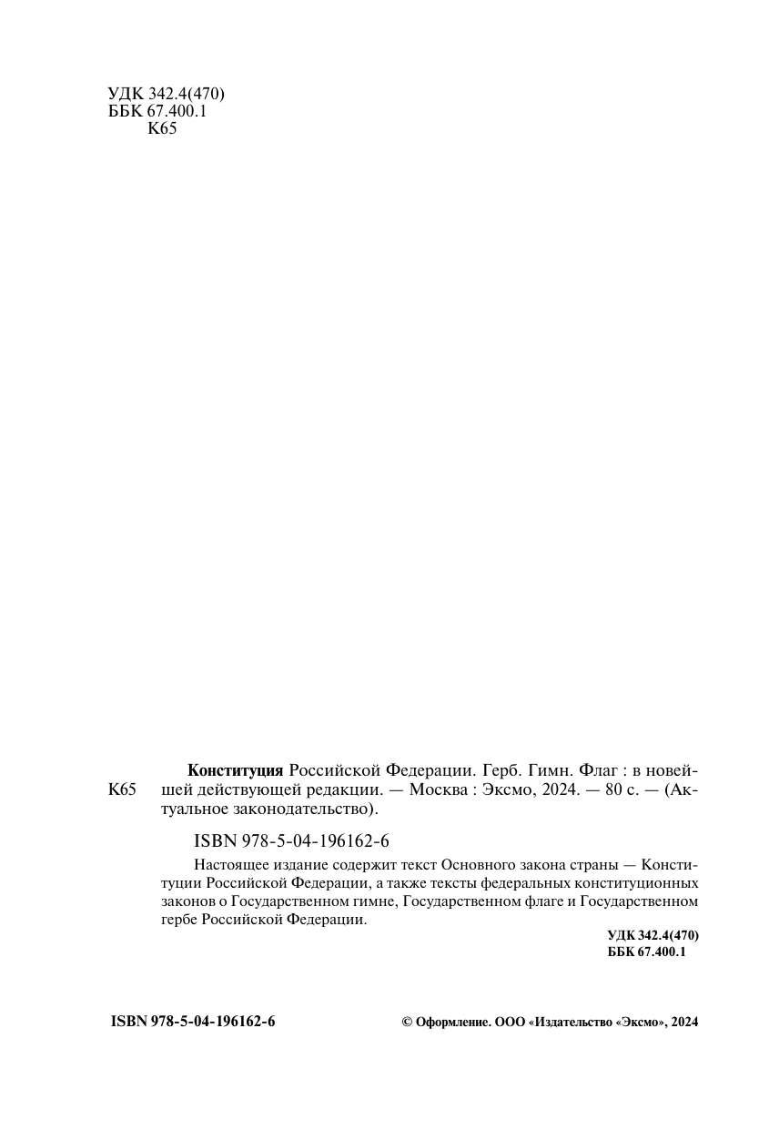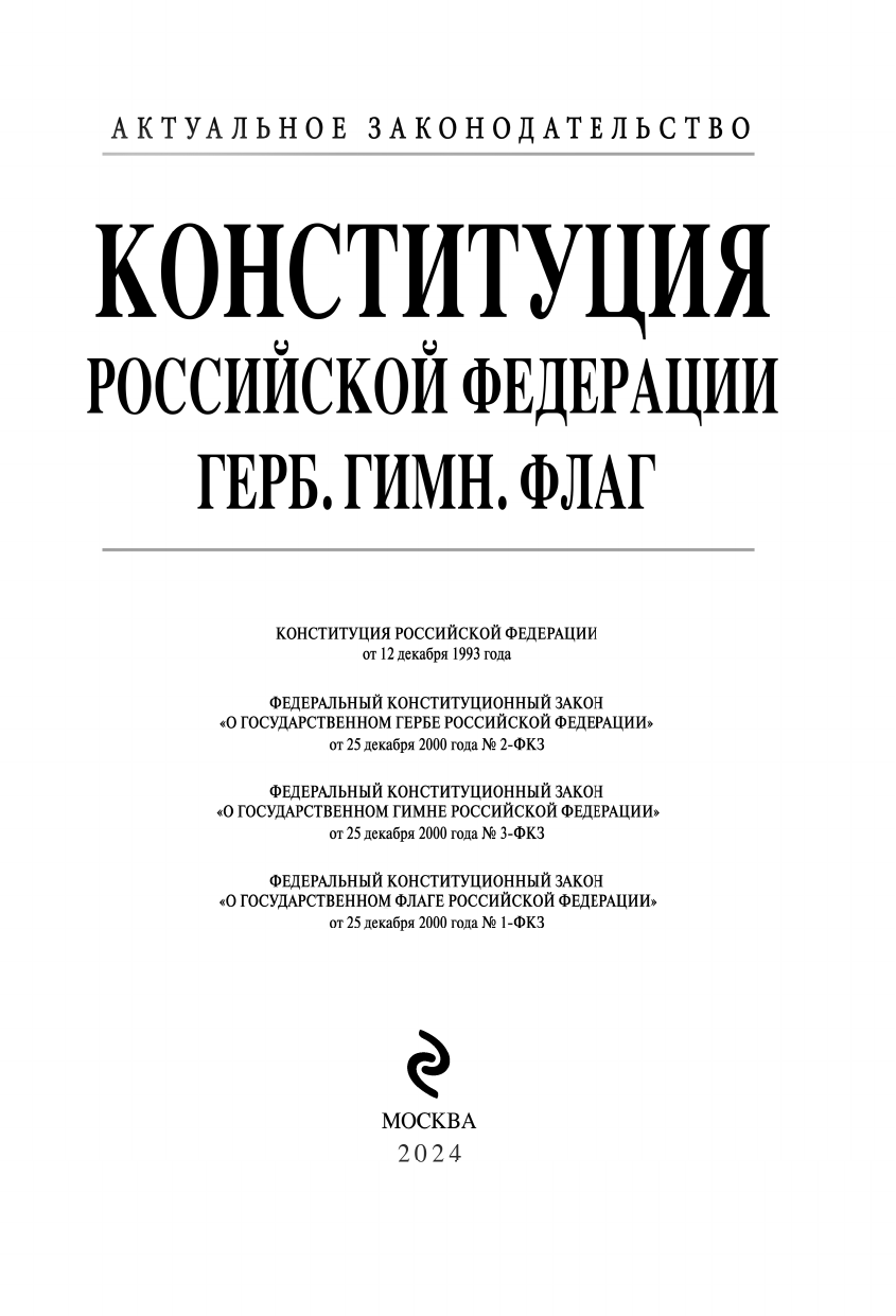 Конституция Российской Федерации. Герб. Гимн. Флаг. В новейшей действующей редакции (без автора); ООО "Издательство "Эксмо", 2024