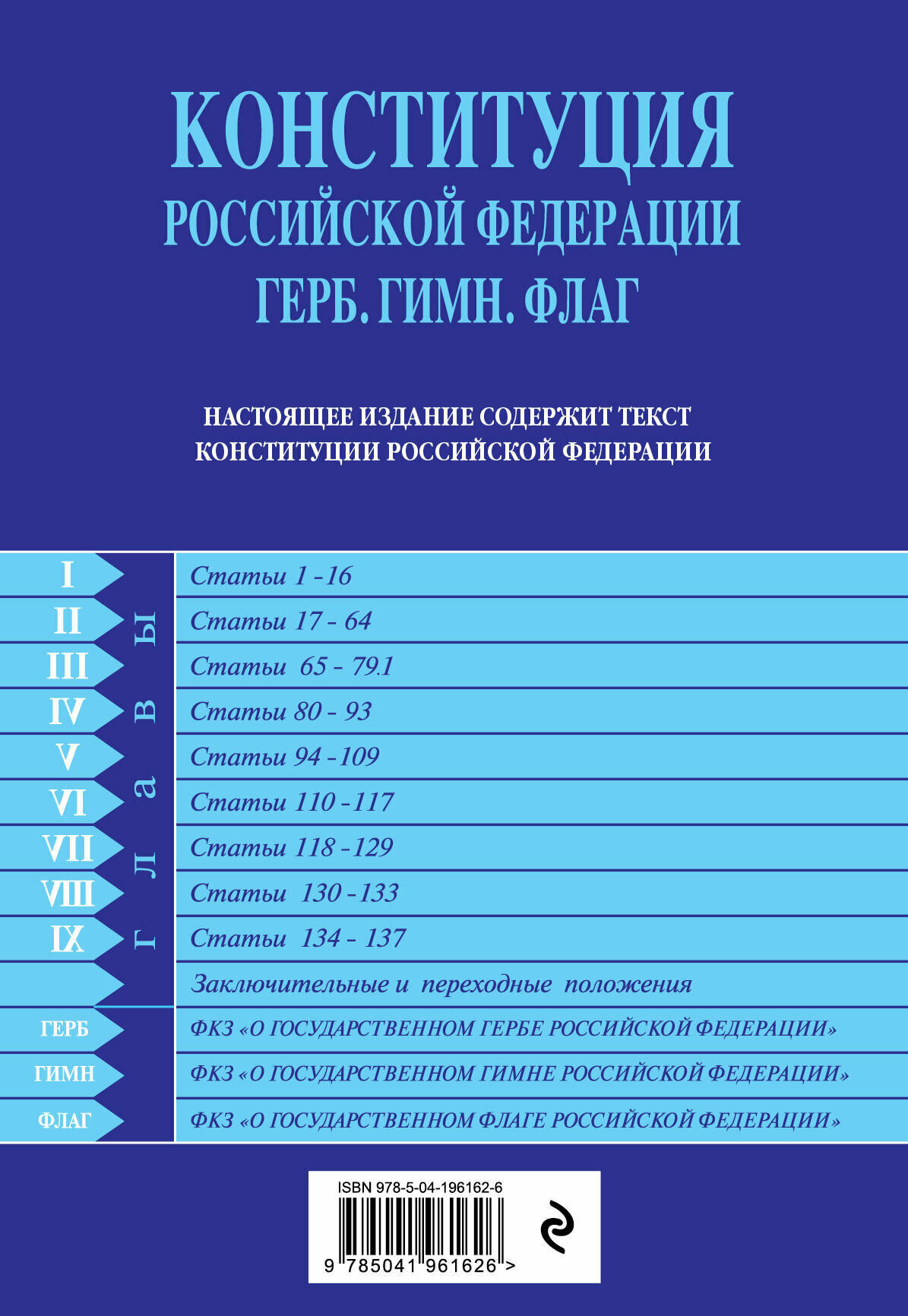Настоящее издание содержит текст Основного закона страны – Конституции Российской Федерации, а также тексты федеральных конституционных законов о Государственном гимне, Государственном флаге и Государственном гербе Российской Федерации.
