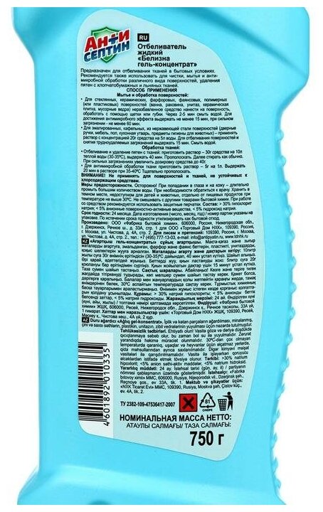 Отбеливатель Антисептин Белизна гель-концентрат 750 г