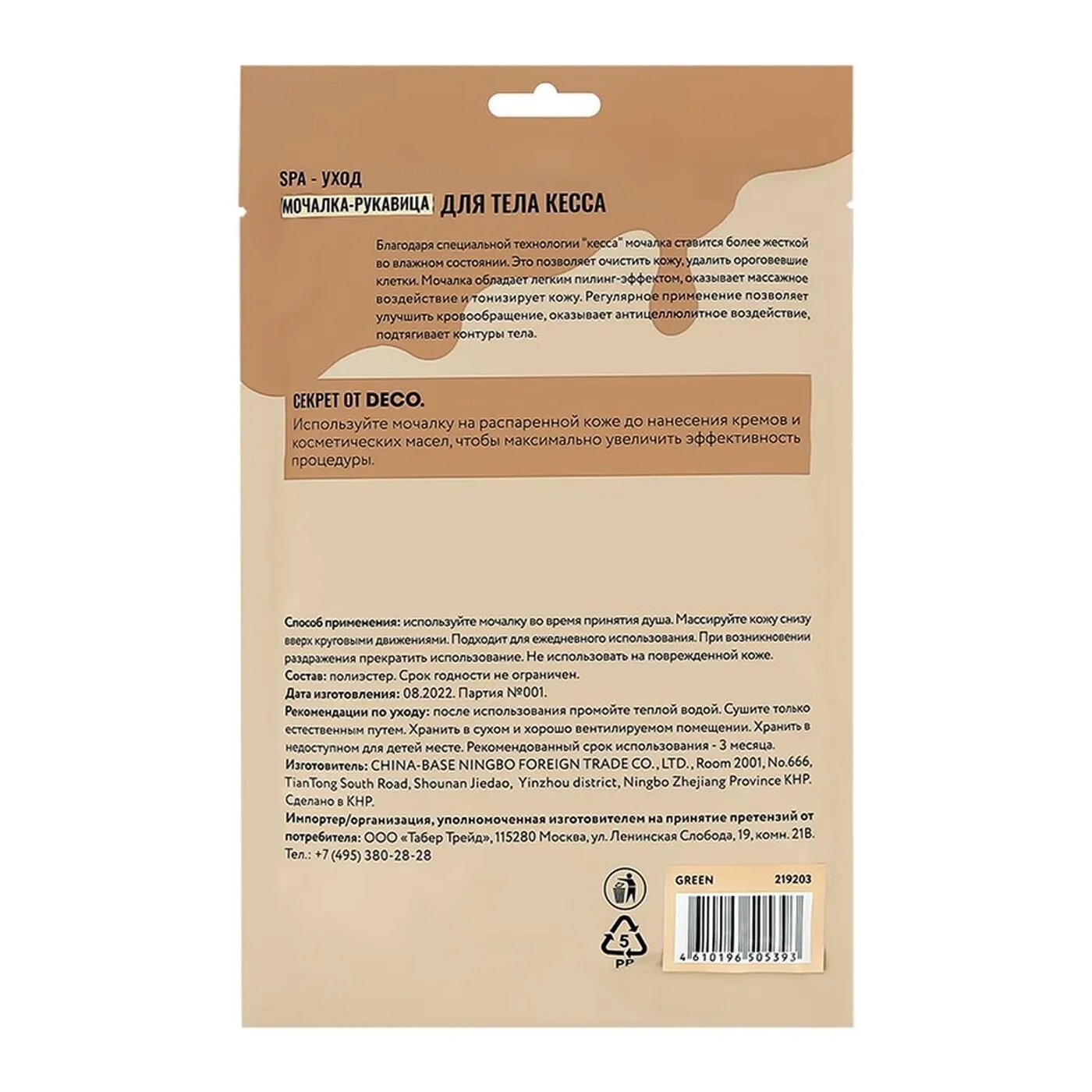 Мочалка-рукавица для тела DECO. кесса green