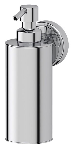 Дозатор для жидкого мыла с футуристичным дизайном. Полностью выполнен из хромированной латуни, которая не подвержена коррозии, выдерживает как высокую влажность ванной комнаты, так и чистку моющими средствами. Объем дозатора - 260 мл, настенное крепление полностью скрывает элементы крепежа.