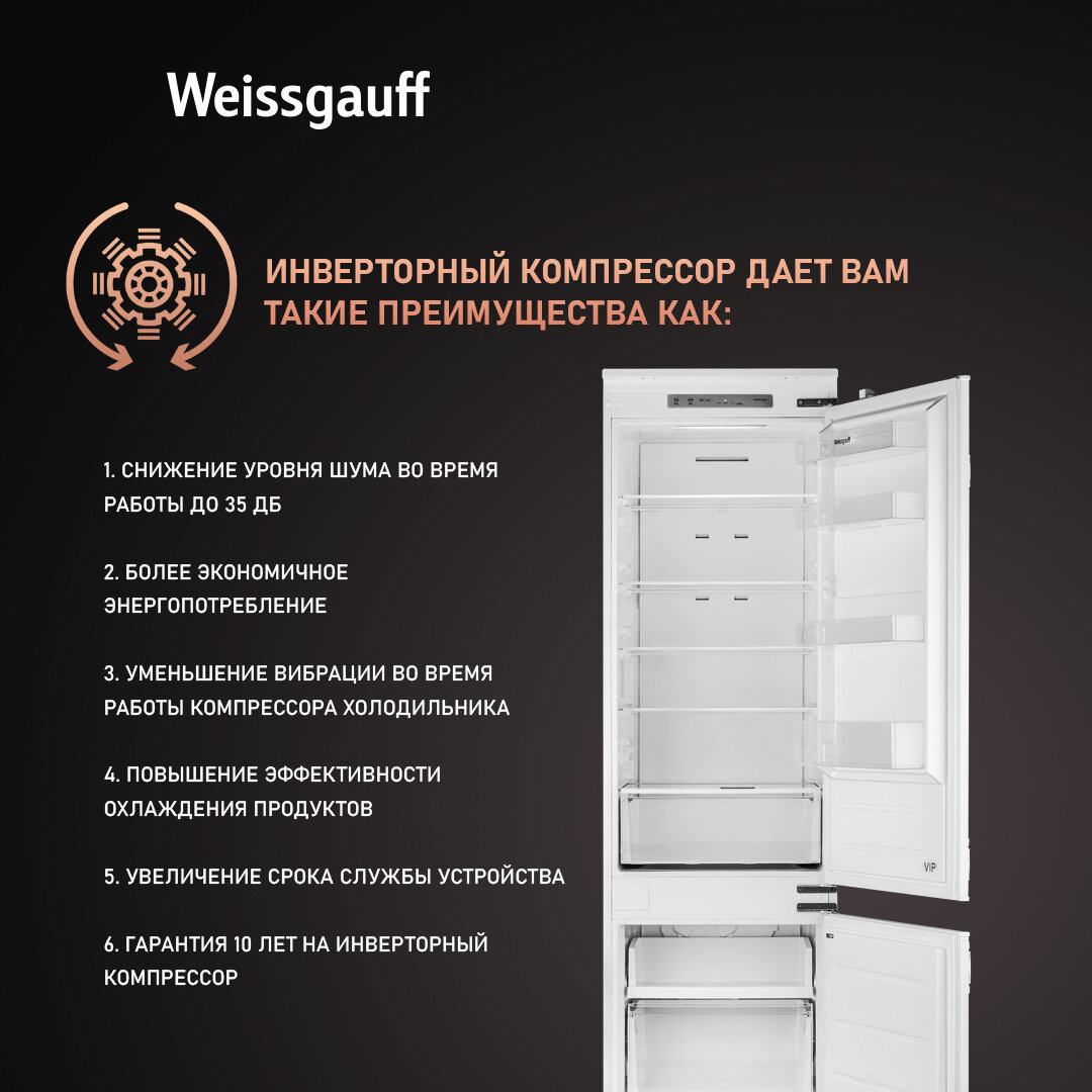 Встраиваемый холодильник с инвертором Weissgauff Wrki 195 Total NoFrost Inverter