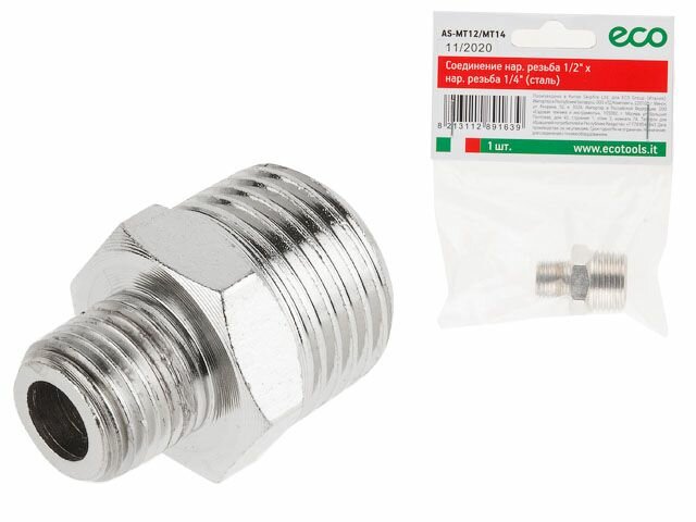 Сервис сравнения цен СкидкаГИД предлагает сравнить цены на товар «Соединение нар. резьба 1/2'х нар. резьба 1/4' (сталь) ЕСО (AS-MT12/MT14) Eco (1552691)»