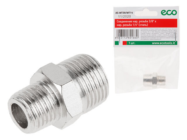 Соединение нар. резьба 3/8'х нар. резьба 1/4' /сталь) ЕСО (AS-MT38/MT14) Eco (1552694)