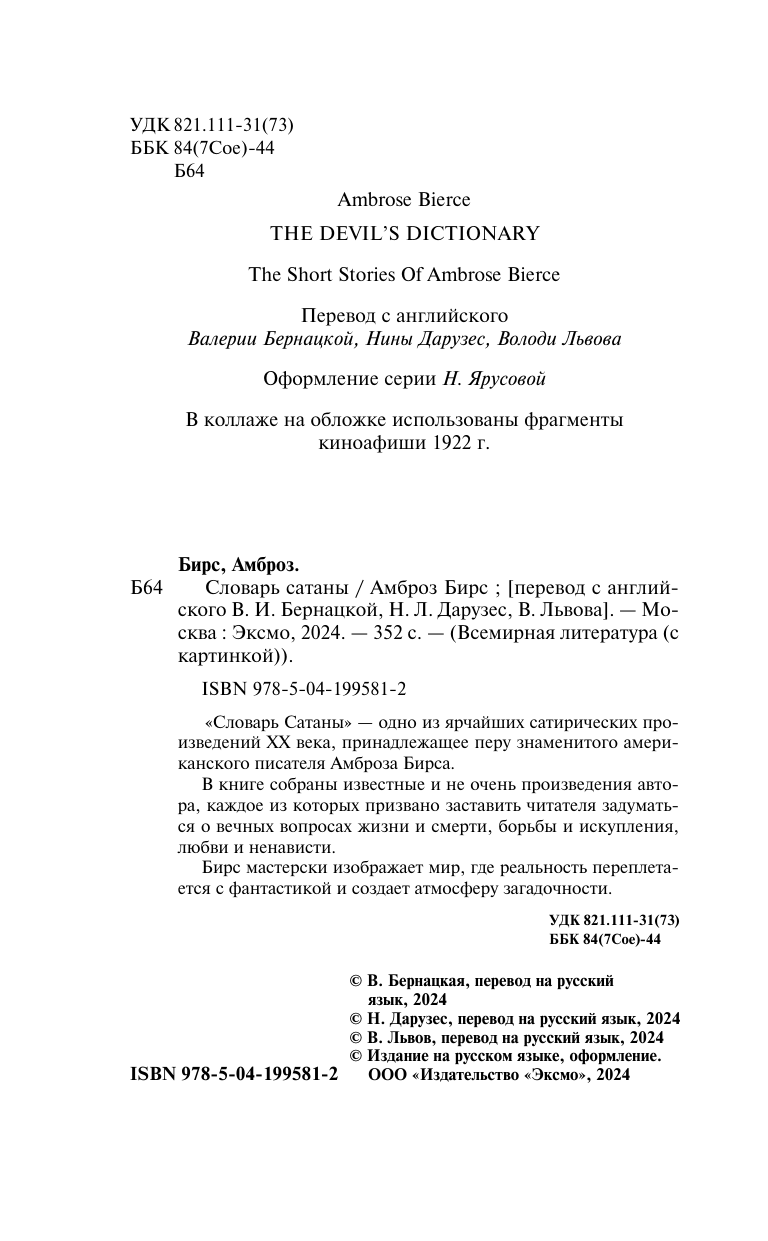 Книга: Словарь сатаны (Амброз Бирс); Эксмо, Редакция 1, 2024