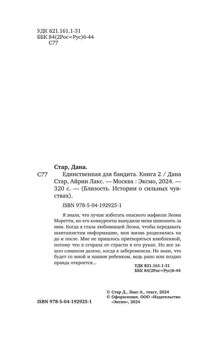 Единственная для бандита. Книга 2 (Стар Дана, Айрин Лакс); ООО "Издательство "Эксмо", 2024