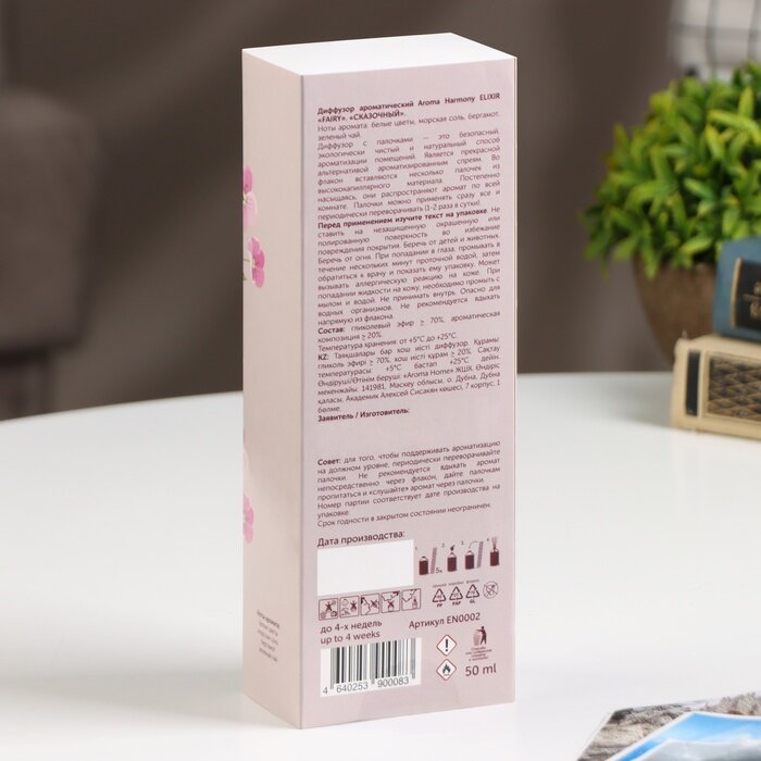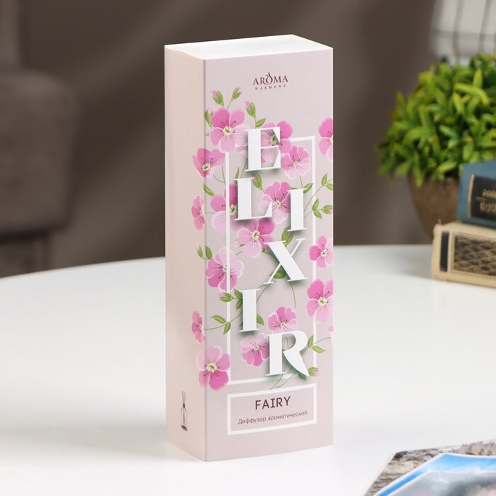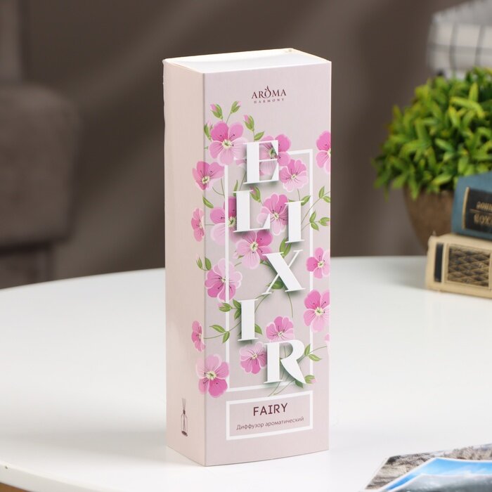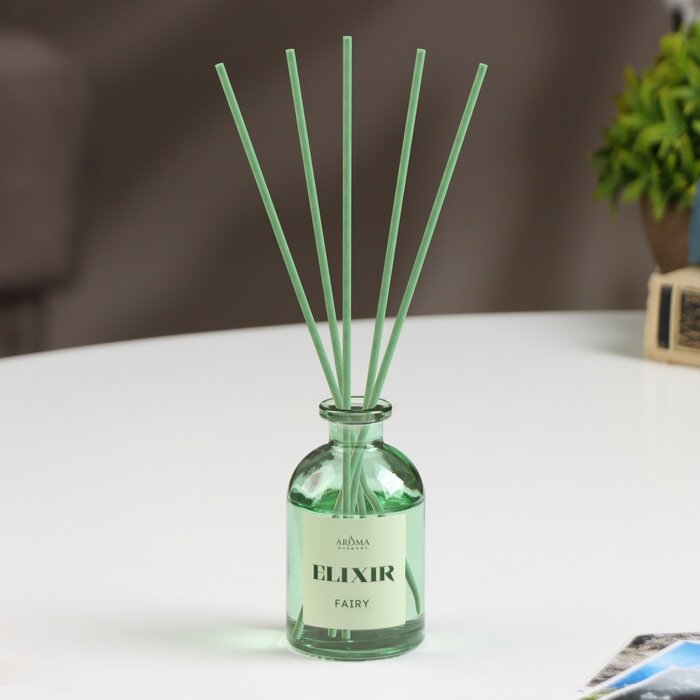 **Ароматический диффузор Aroma Harmony Elixir Fairy** — удобное и простое в использовании приспособление, при помощи которого можно создать комфортную атмосферу в доме. Аксессуар источает приятный, легкий аромат, наполняющий атмосферу свежестью и уютом. Способ применения максимально простой — достаточно открыть упаковку, извлечь бутылочку и вставить в нее палочки. Чем больше последних, тем насыщеннее распространяемый аромат и, наоборот.