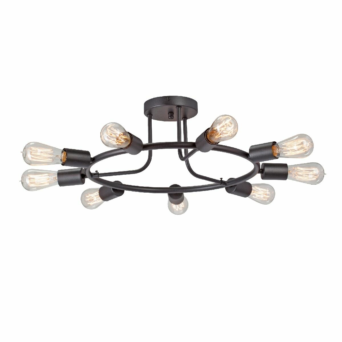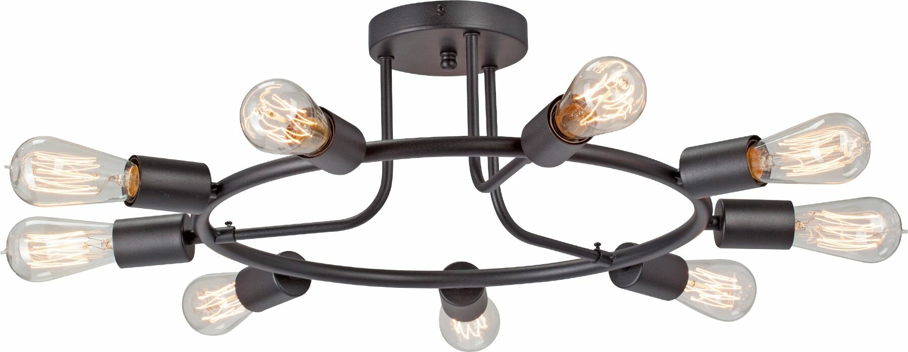 Потолочная люстра Vitaluce в черном цвете выполнена в стиле Лофт, но может прекрасно дополнить различные по стилю интерьеры. Расчитана на 9 ламп мощностью 40Вт для эффективного освещения 27м? помещений. Крепится к потолку с помощью планки и имеет тип цоколя - E27. Основание изделия выполненно из металла. Лампочки в комплект не входят, не забудьте их приобрести.