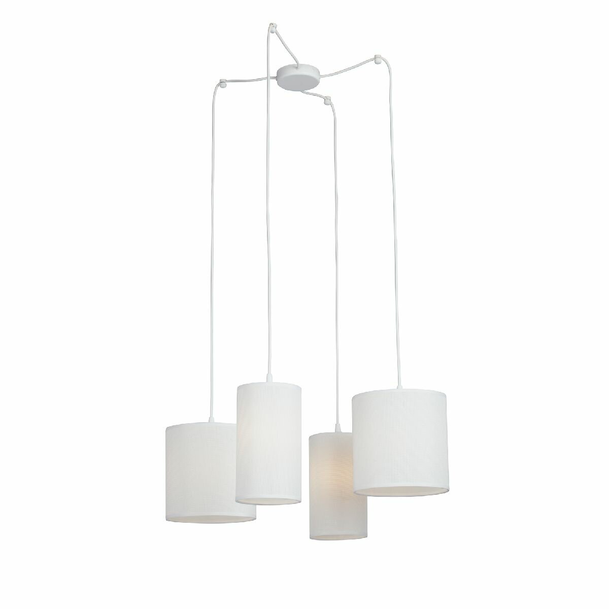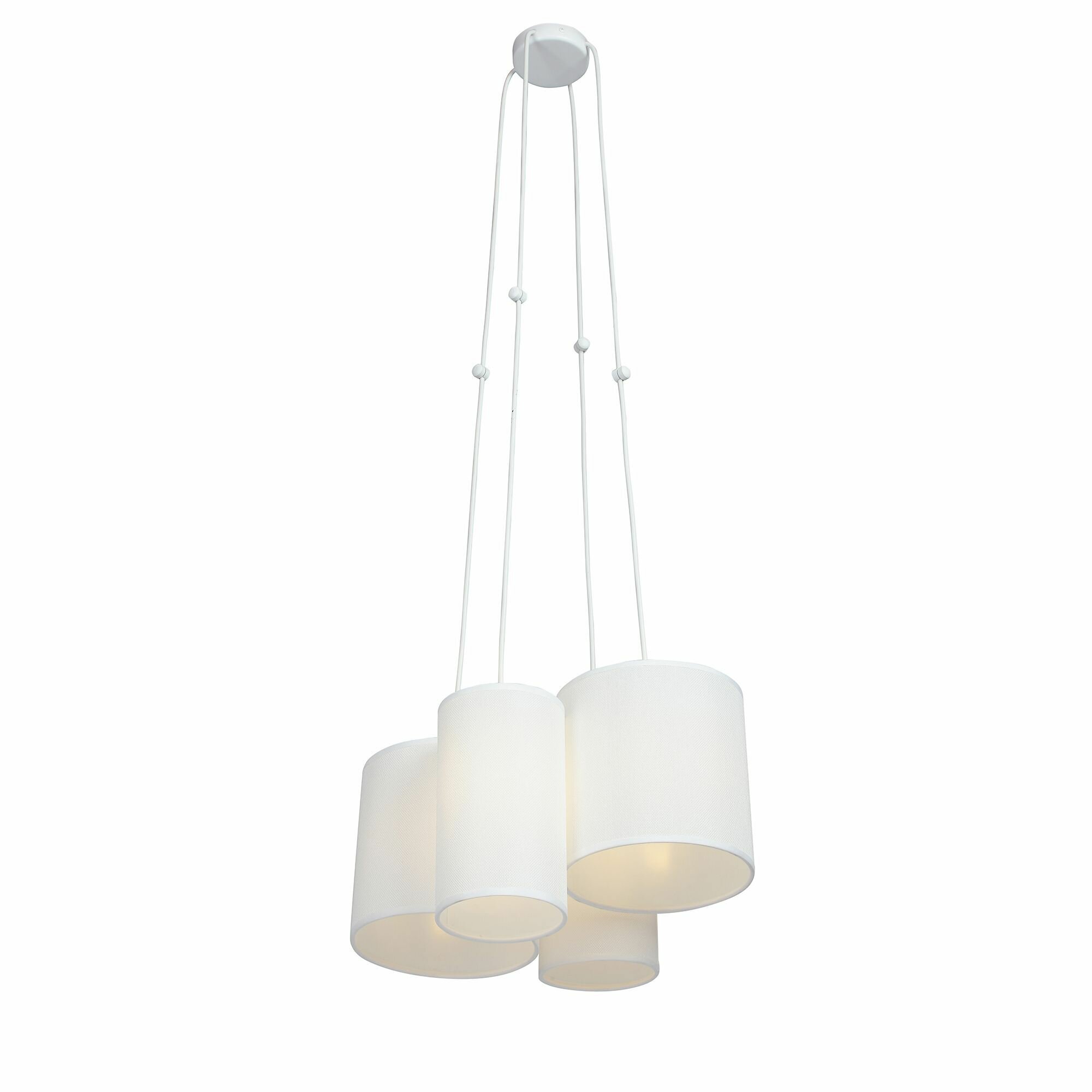 люстра vitaluce выполнена в стиле арт-деко, имеет 4 лампы с цоколем e27 и максимальной мощностью 40 вт, корпус из металла с текстильными абажурами, высота до 123 см, диаметр 40 см, подходит для освещения площадью до 12 кв.м, белого цвета, стильная и функциональная подвесная люстра.