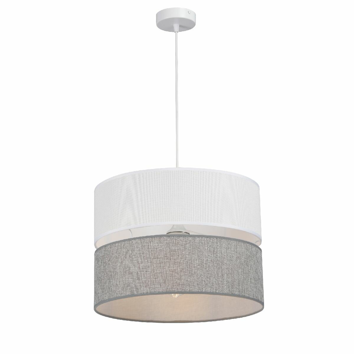 подвесной светильник vitaluce с одним источником света e27 мощностью до 40 вт, высота 128 см, ширина 40 см, тканевый серый абажур, белый каркас, подходит для гипсокартонных потолков, степень защиты ip20