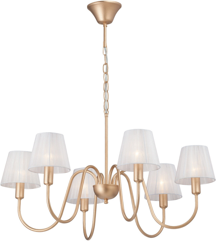 подвесная люстра vitaluce с шестью лампами e14 мощностью до 40 вт каждая, корпус из металла, плафоны из ткани белого цвета, стиль классика, размеры 76х80х76 см, подходит для гостиной, общая мощность 240 вт