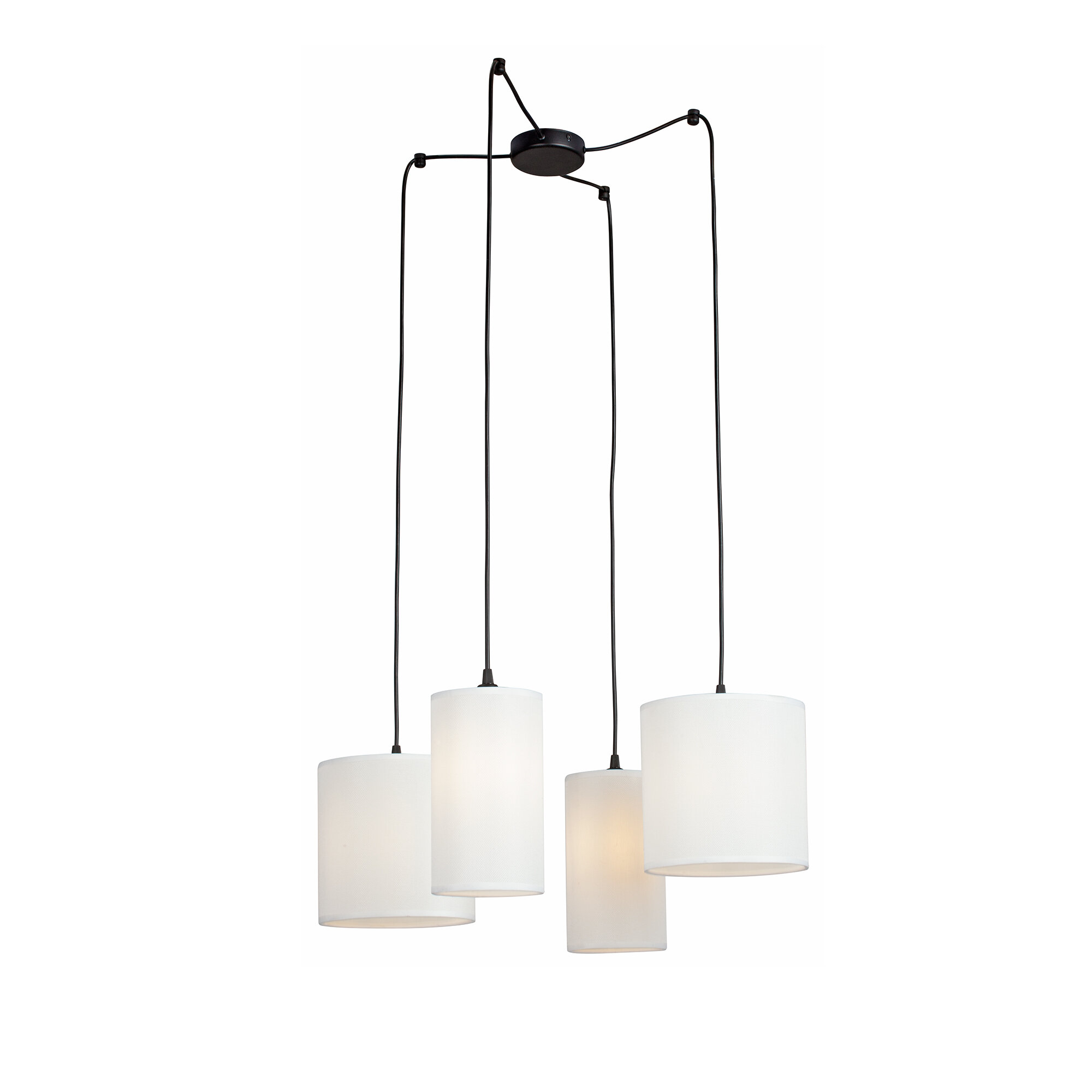 люстра от vitaluce выполнена в стиле арт-деко, подходит для различных интерьеров. конструкция включает 4 лампы с цоколем e27 (максимальная мощность каждой — 40 вт). металлический каркас чёрного цвета сочетается с текстильными плафонами белого оттенка. подвесной светильник обеспечивает равномерное освещение площади до 12 м?. общая высота достигает 123 см, диаметр — 40 см. подходит для использования в жилых и коммерческих помещениях.