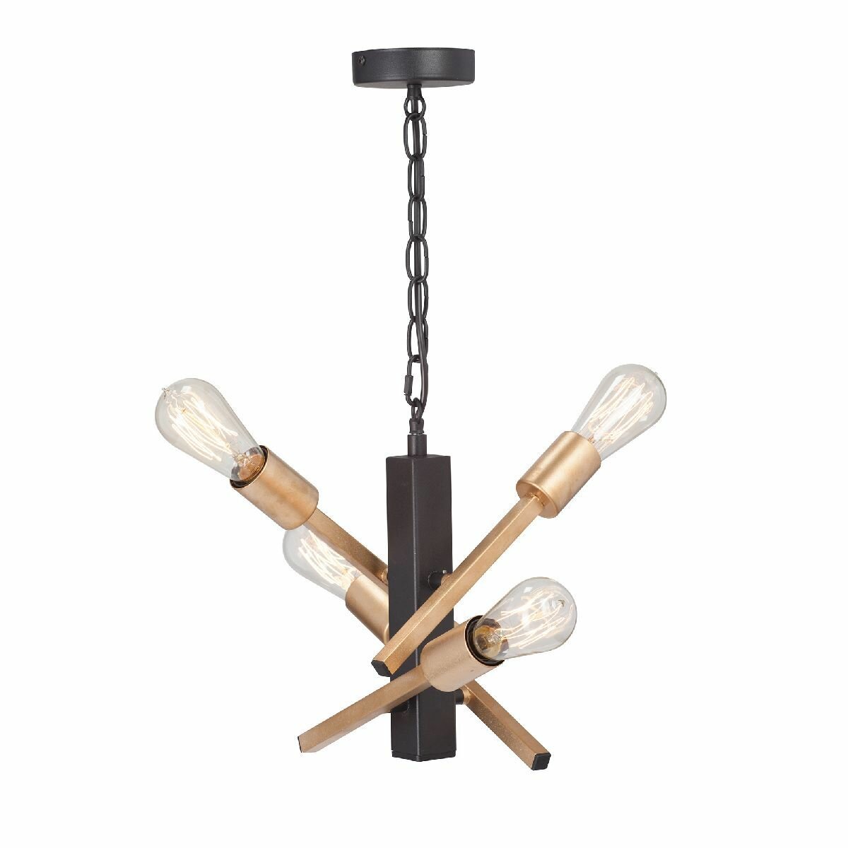 люстра подвесная vitaluce на четыре лампы под цоколь e27 в стиле лофт будет прекрасным дополнением для интерьера, мощность каждой лампы до 40 вт, ширина 29 см, высота 58 см, цвет каркаса черный матовый с золотом, подходит для накаливания, светодиодных и филаментных ламп, площадь освещения до 12 кв.м