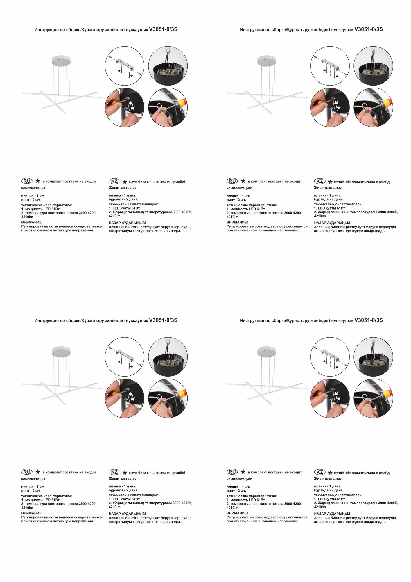 | Мощность лампы, W | 61 |