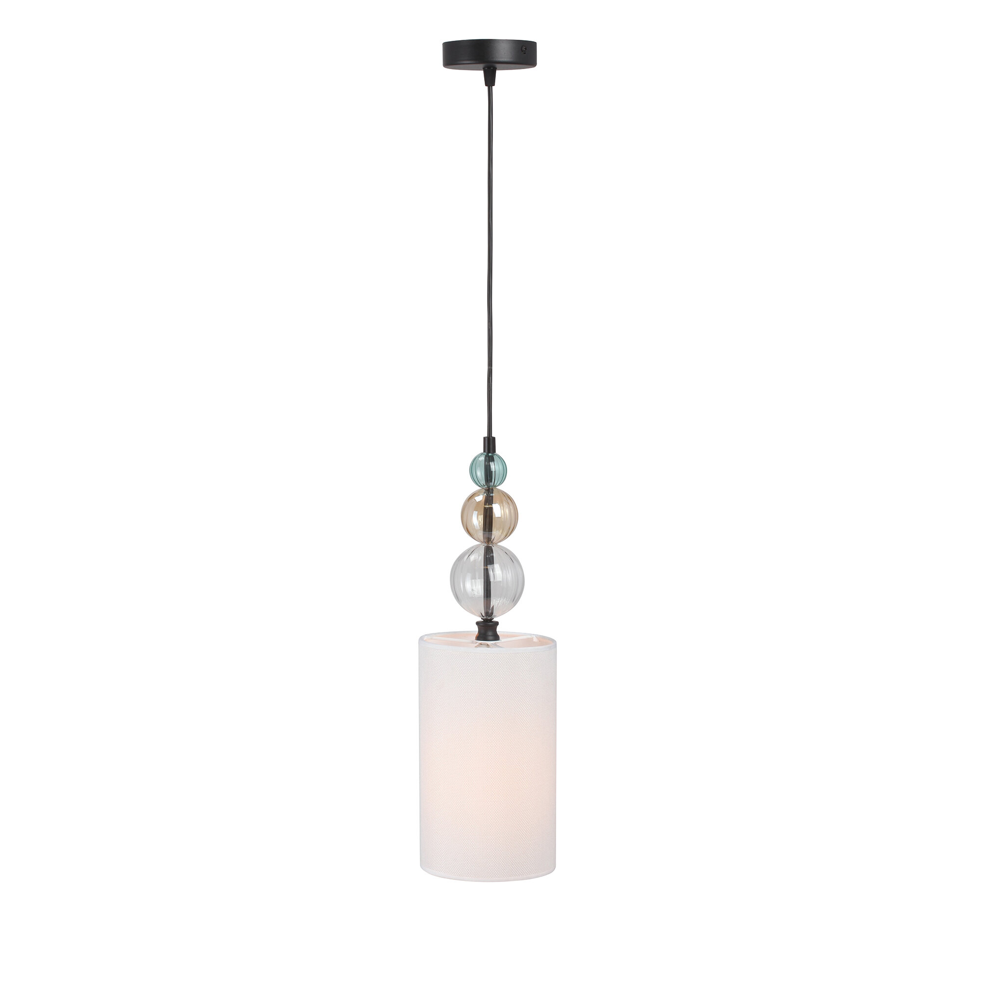 подвесной светильник vitaluce с одним источником света, тип цоколя e27, максимальная мощность лампы 40 вт, металлическое основание и тканевый белый плафон цилиндрической формы, вес 0,73 кг, высота 133 см, ширина 15 см, подходит для освещения помещений до 3 кв.м. подходит для ламп накаливания и светодиодных, стиль не указан