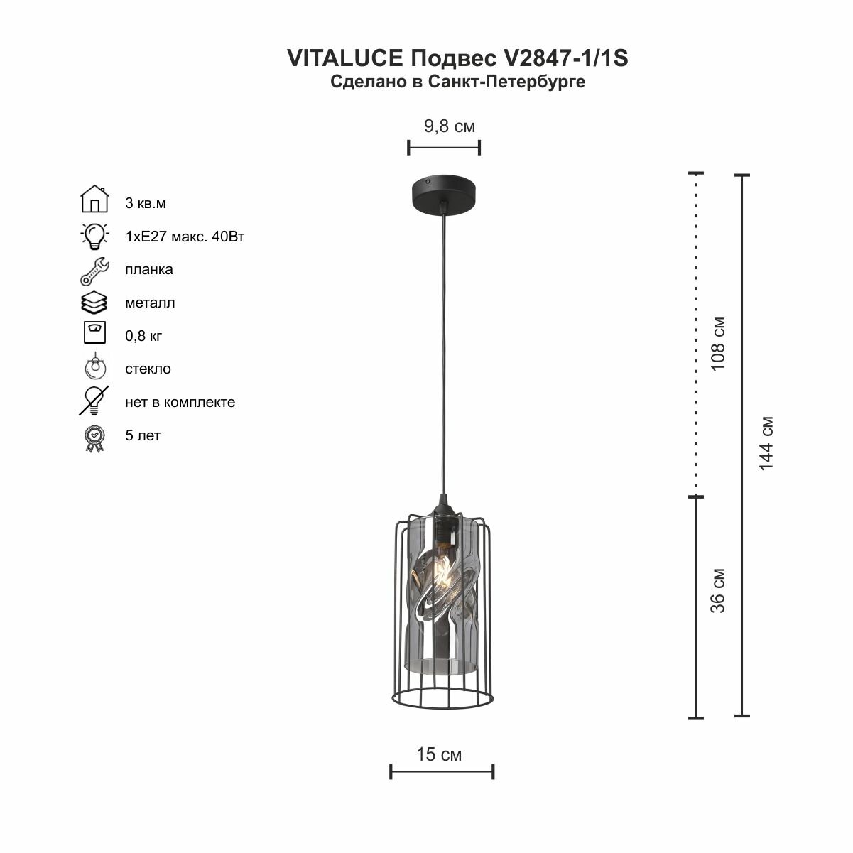 Подвесной светильник Vitaluce V2847-1/1S