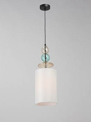 подвесной светильник vitaluce с одной лампой накаливания мощностью до 40 вт, выполнен в стиле модерн, материал основания металл, плафон из ткани белого цвета, размеры 138 см в высоту и 20 см в ширину, подходит для гостиной