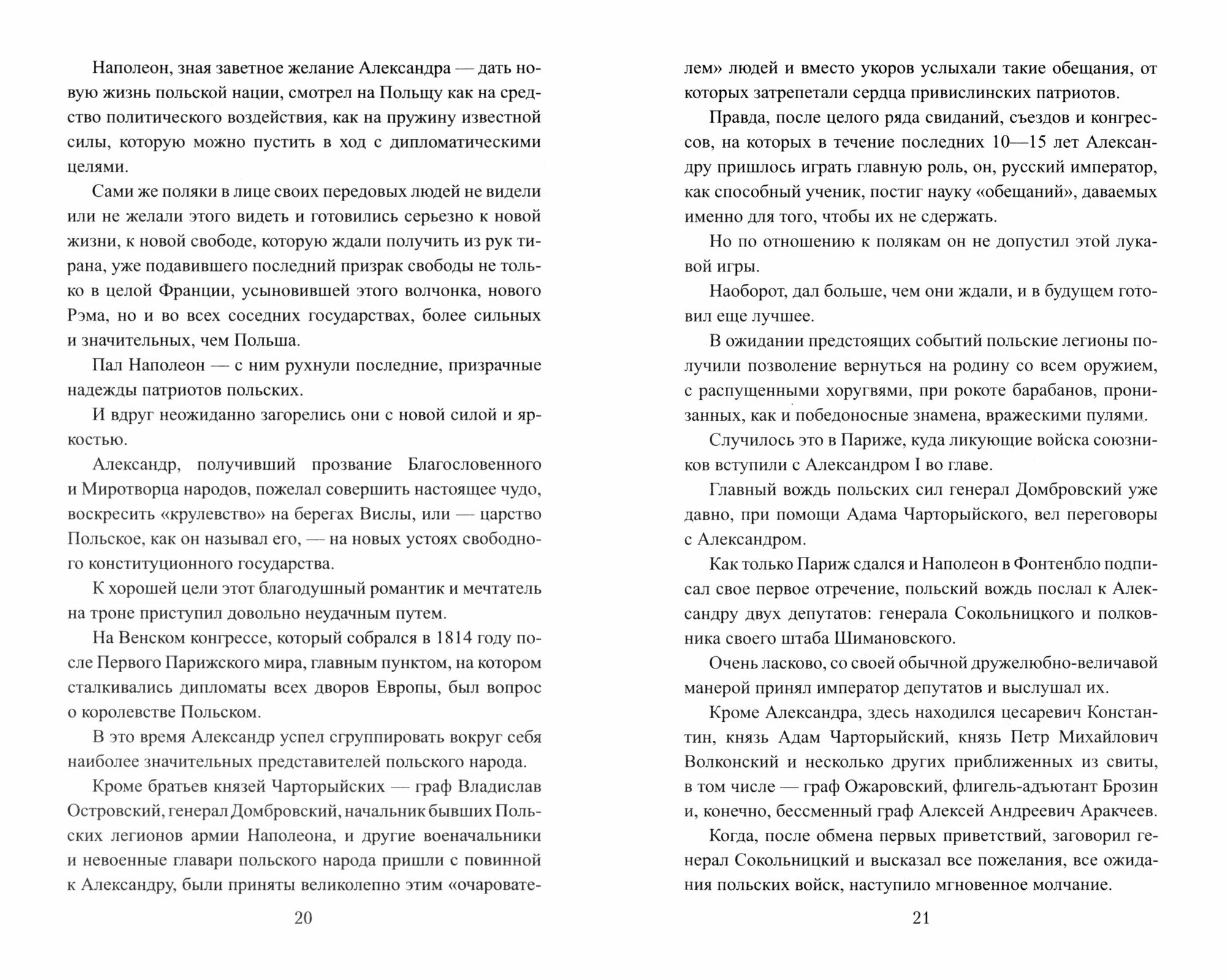 1814 год. Российский император Александр 1 намерен сделать то, что побежденный им Наполеон обещал полякам, но не выполнил. Польское государство, разделенное на части при Екатерине Великой, будет восстановлено. Поляки заранее радуются возвращению «вольности», хотя Польша остается в составе Российской империи. Александр Г будет польским царем, а командующим польскими войсками заранее назначен брат Александра — цесаревич Константин, известный своей любовью к муштре. Вольнолюбивым полякам это не по вкусу, но делать нечего. Они свыкнутся с постоянным пребыванием Константина в Варшаве, а их отношения с цесаревичем станут отражением противоречивых отношений России и Польши.