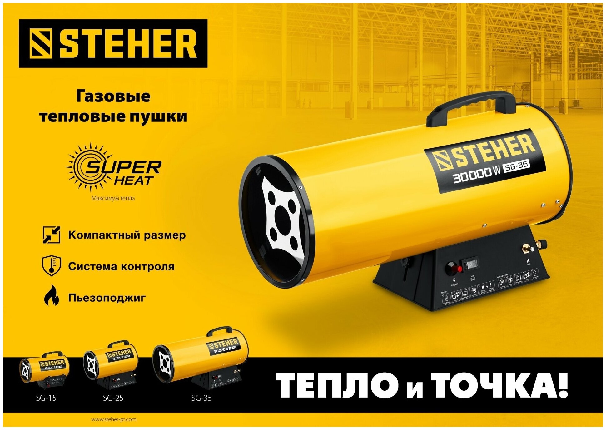 Серия газовых пушек от немецкого производителя STEHER позволит каждому подобрать топливный теплогенератор для обогрева того или иного помещения. В данной линейке имеется несколько вариантов с различным уровнем мощности, но все они отвечают действующим стандартам качества и безопасности, а также гарантируют стабильную работу и высокий уровень энергоэффективности.