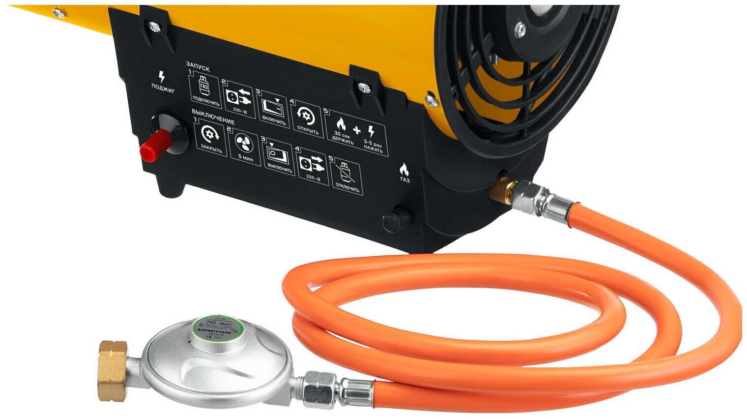 - Армированный газовый шланг с редуктором давления в комплекте.